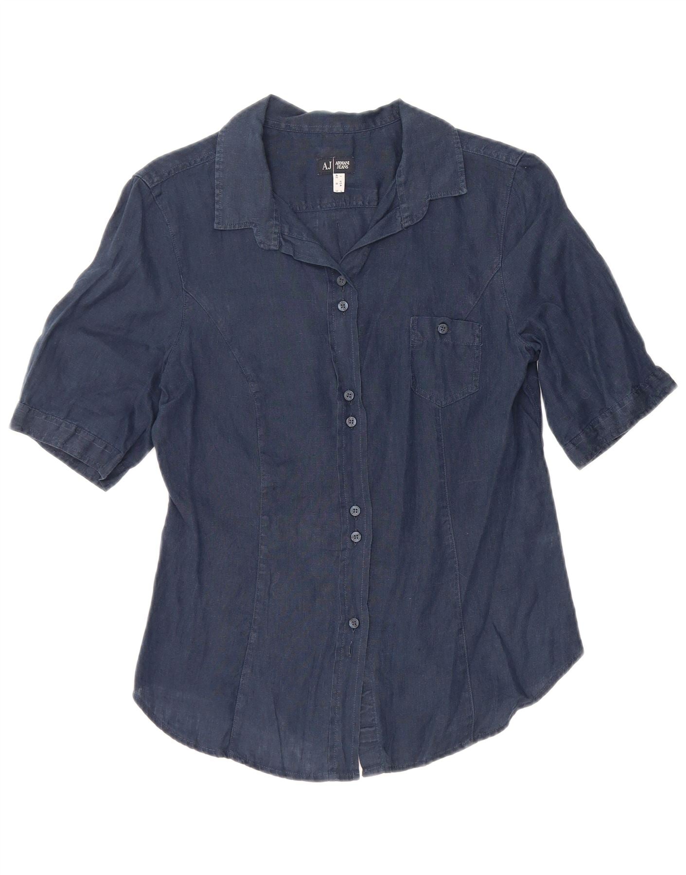 Γυναικείο κοντομάνικο πουκάμισο ARMANI JEANS Μπλούζα UK 12 Medium Navy Blue Λινά