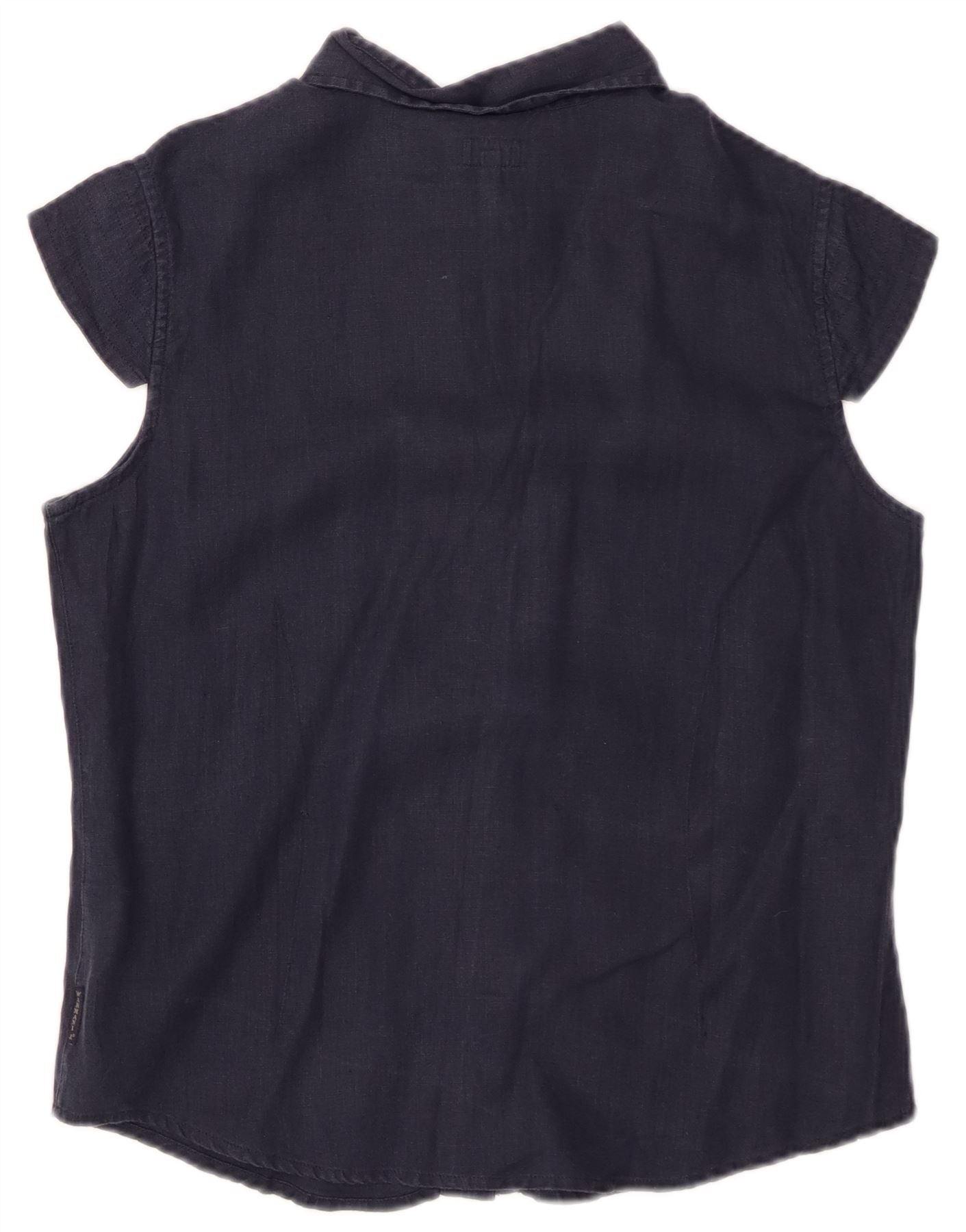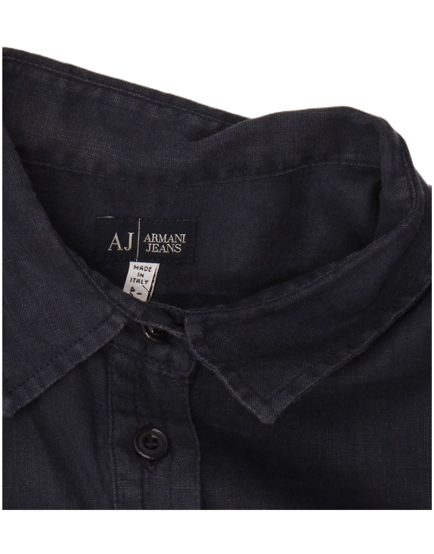Γυναικείο κοντομάνικο πουκάμισο ARMANI JEANS UK 14 Medium Navy Blue Linen