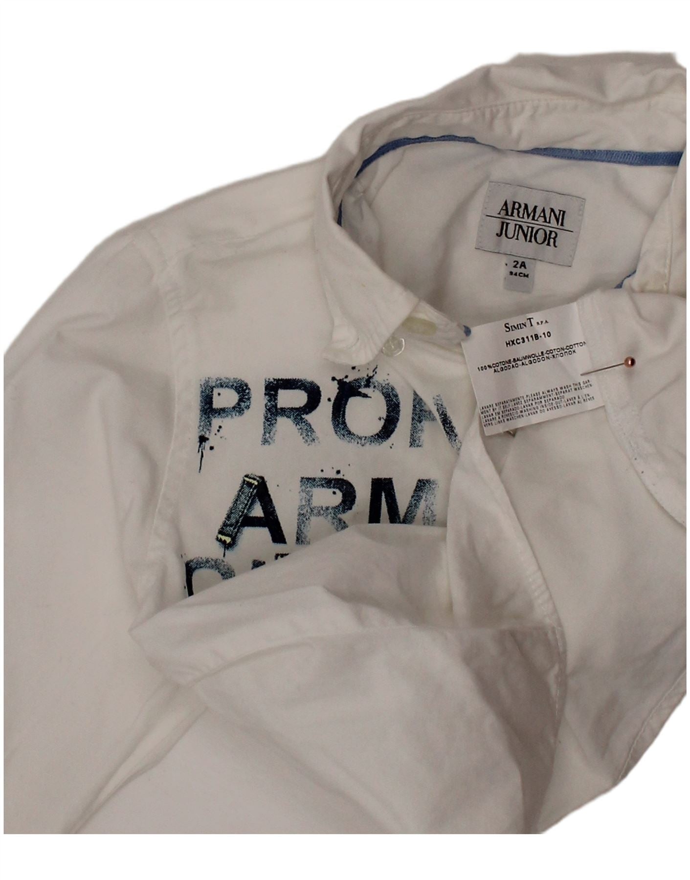 ARMANI JUNIOR Βρεφικό αγόρι γραφικό πουκάμισο 18-24 μηνών λευκό βαμβακερό