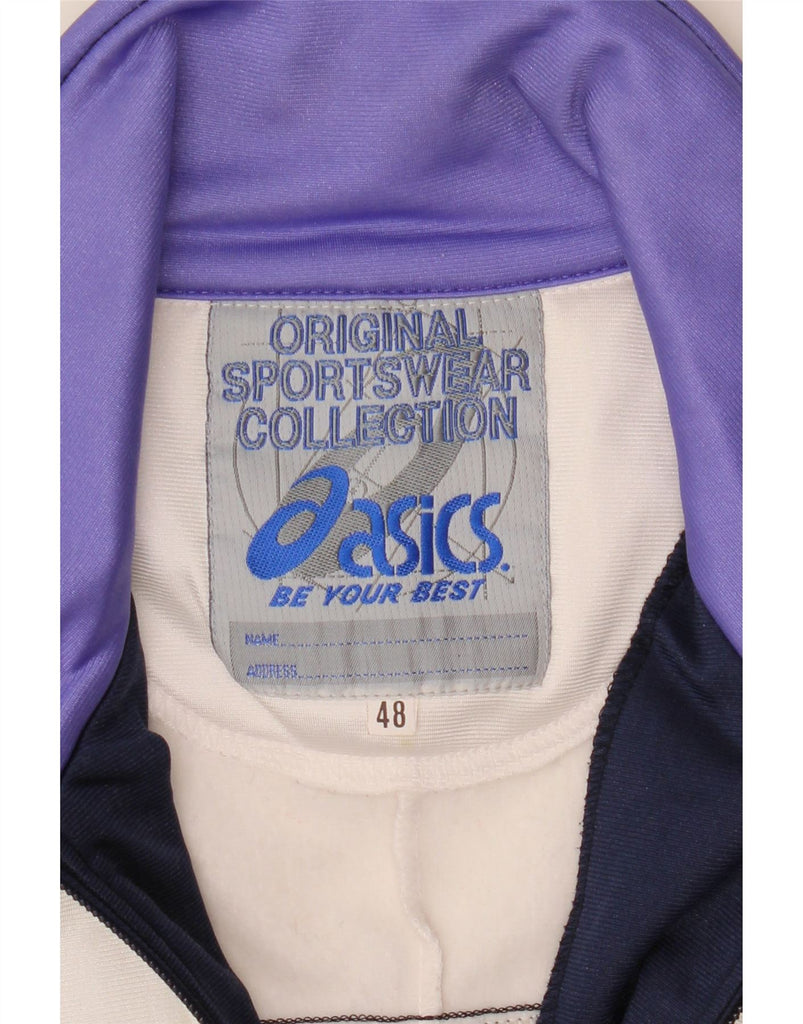 ASICS Mens Graphic Tracksuit Top Jacket IT 48 Medium Navy Blue Colourblock