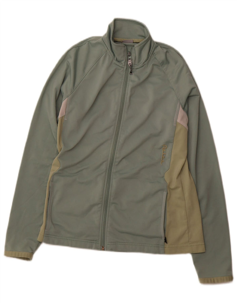 ASICS Womens Tracksuit Top Jacket UK 10 Small Green Colourblock