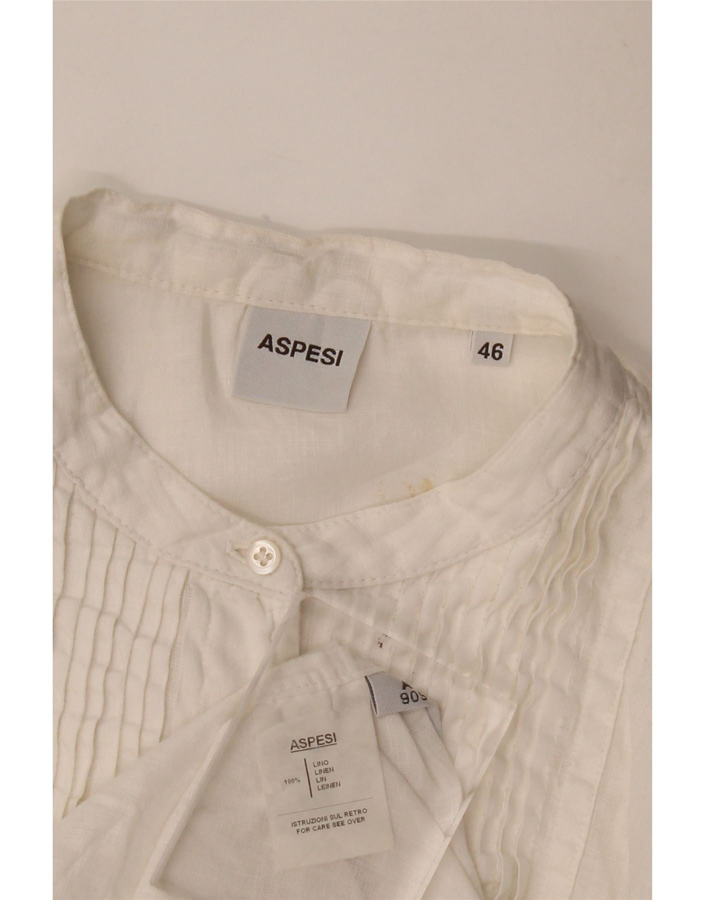 - Περιγραφή AI: Αυτή η γυναικεία μπλούζα Aspesi είναι φτιαγμένη από 100 τοις εκατό από λευκό υφαντό λινό. Διαθέτει λαιμόκοψη με γιακά και μακριά μανίκια. Το μπροστινό μέρος είναι λεπτομερές με κομψές πιέτες και κλείσιμο με πλήρες κουμπί. Η κανονική εφαρμογή εξασφαλίζει άνετη χρήση και κλασική σιλουέτα. Αυτό το κομμάτι προσφέρει μια εκλεπτυσμένη αλλά χαλαρή αισθητική, ιδανικό για ευέλικτο στυλ.