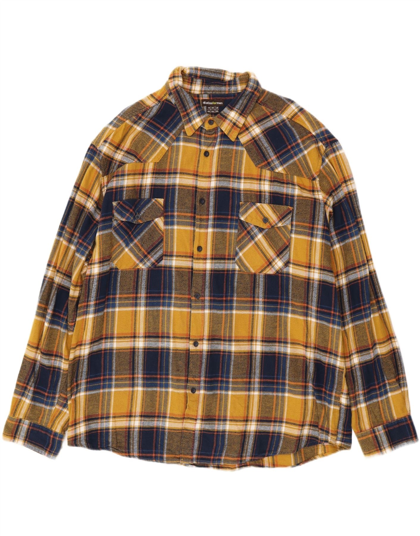 ATLAS FOR MEN Ανδρικό φανελένιο πουκάμισο 3XL Κίτρινο βαμβακερό καρό