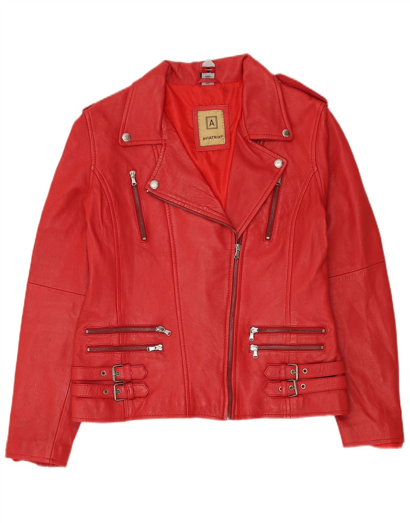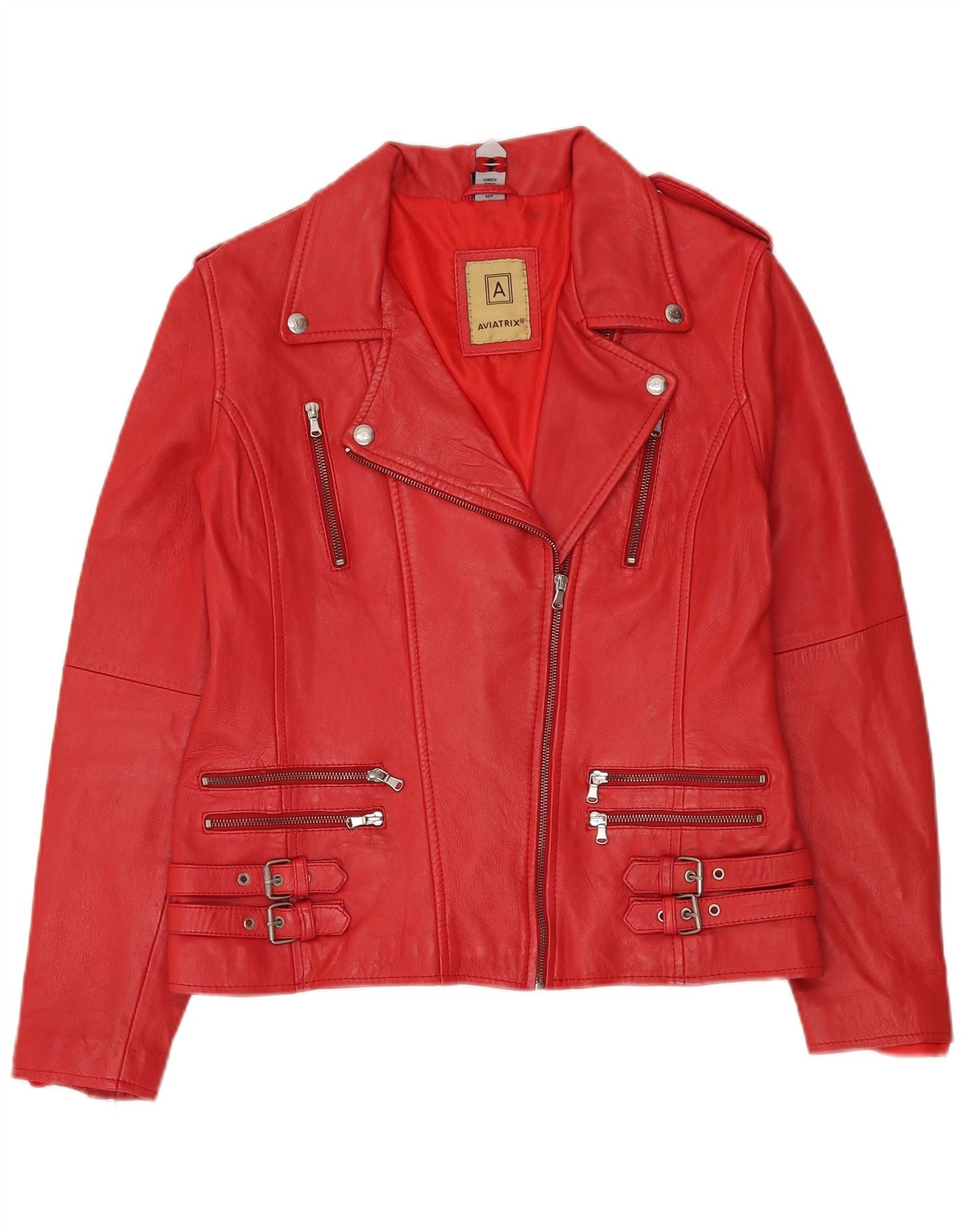AVIATRIX Γυναικείο Δερμάτινο Μπουφάν Biker EU 50 3XL Κόκκινο Δερμάτινο