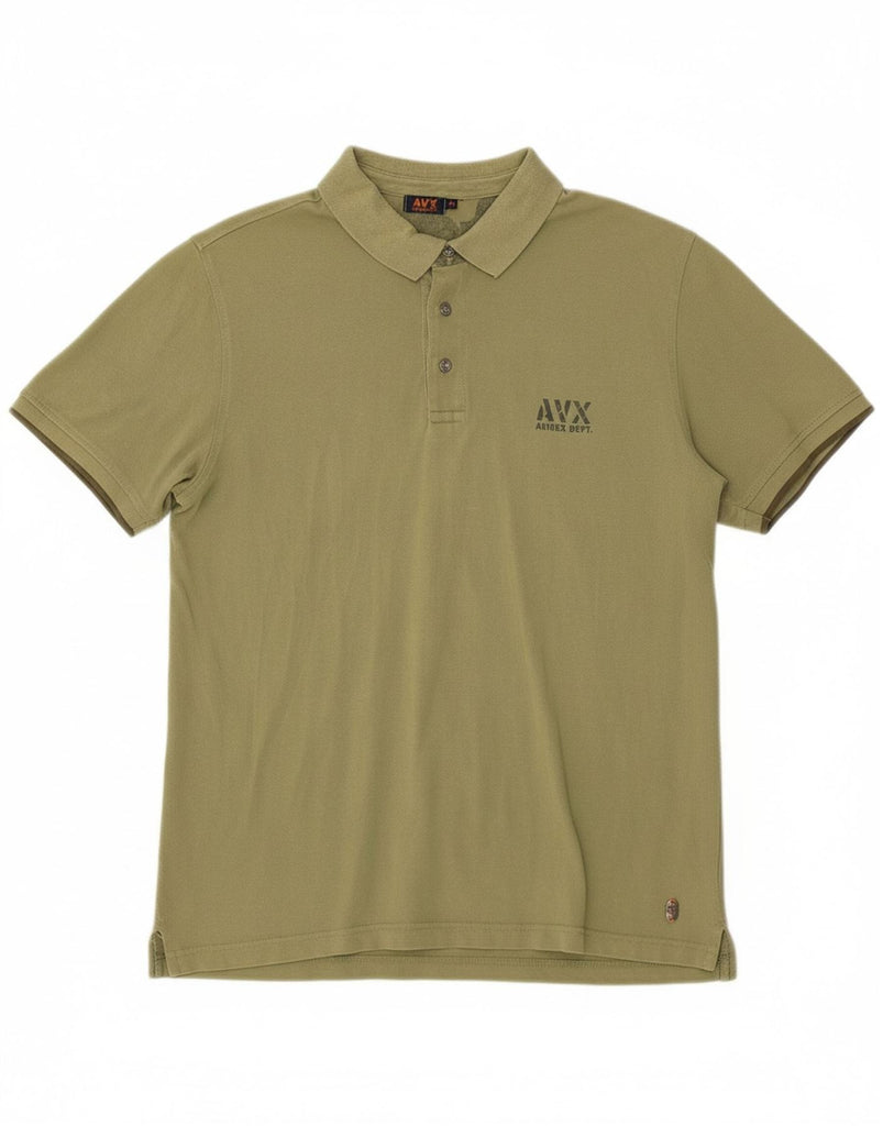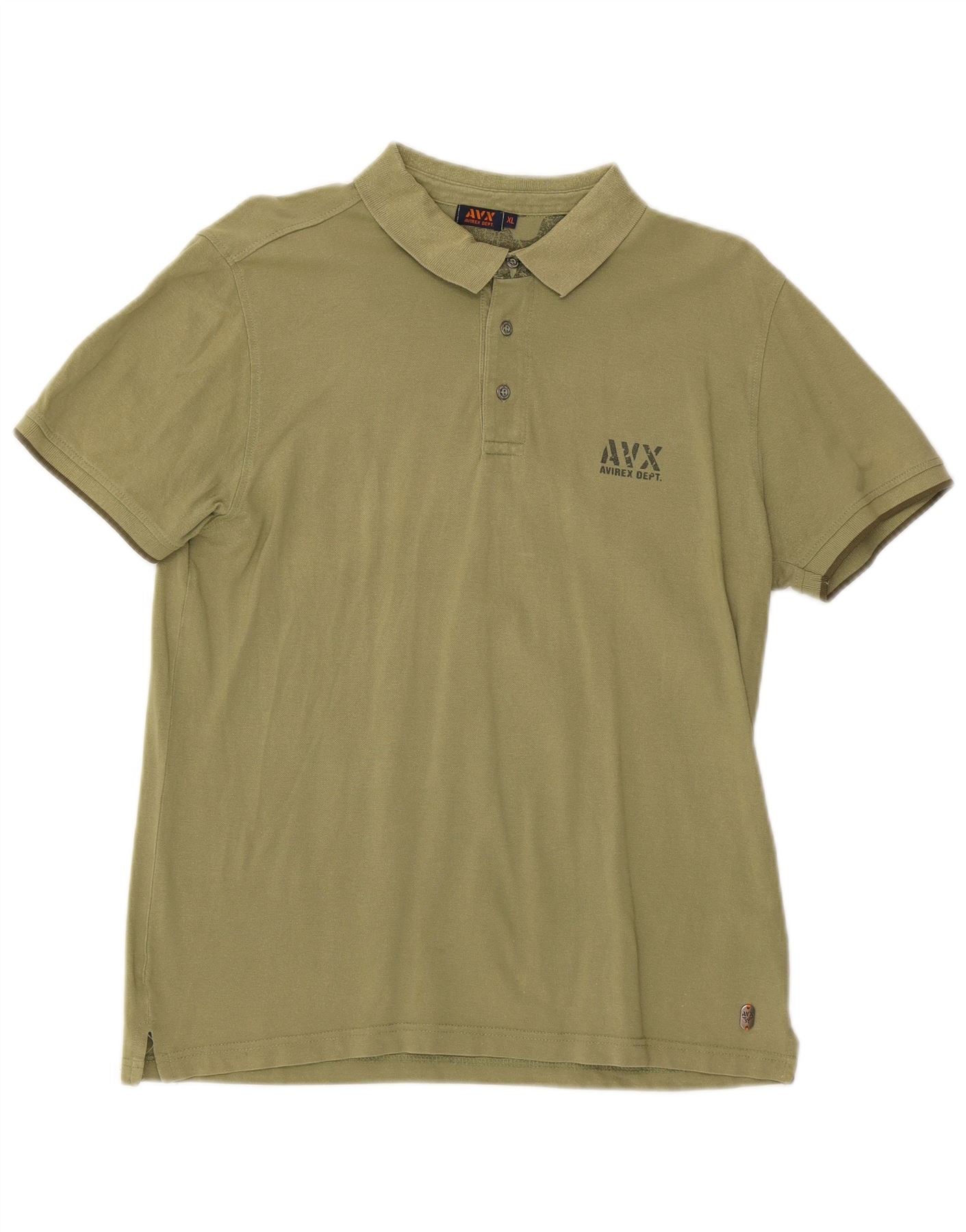 - AI Description: This Avirex mens Polo Shirt is crafted from a comfortable khaki knit fabric. It features a classic collared neckline and a button-up front. Short sleeves and a regular fit ensure comfort and ease. A subtle logo accent adds a signature touch. This classic style offers timeless appeal for everyday wear.