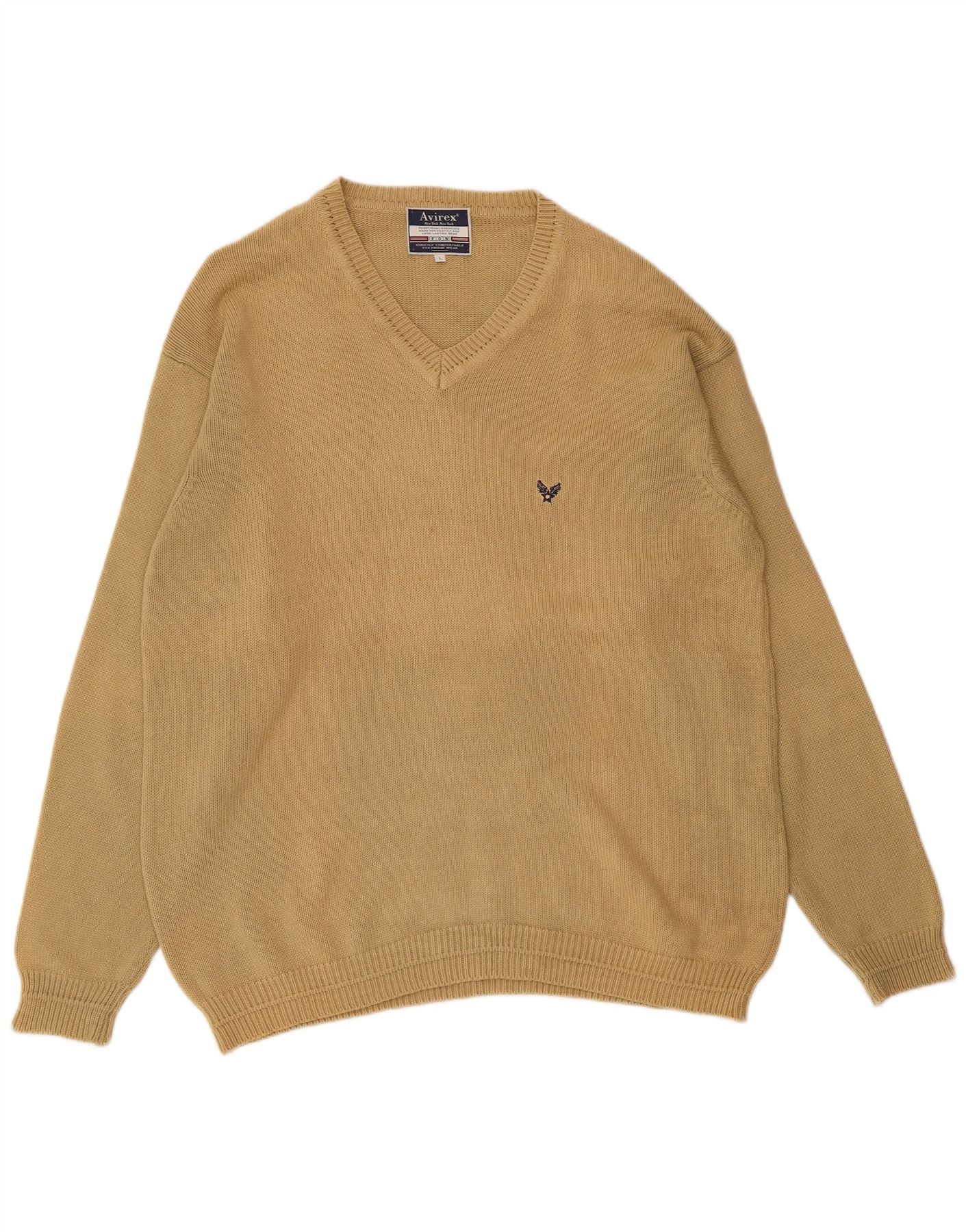 Home > Vintage ρούχα Avirex > Ανδρικά > Avirex Ανδρικό πουλόβερ με λαιμόκοψη με λαιμόκοψη, μεγάλο μπεζ βαμβακερό