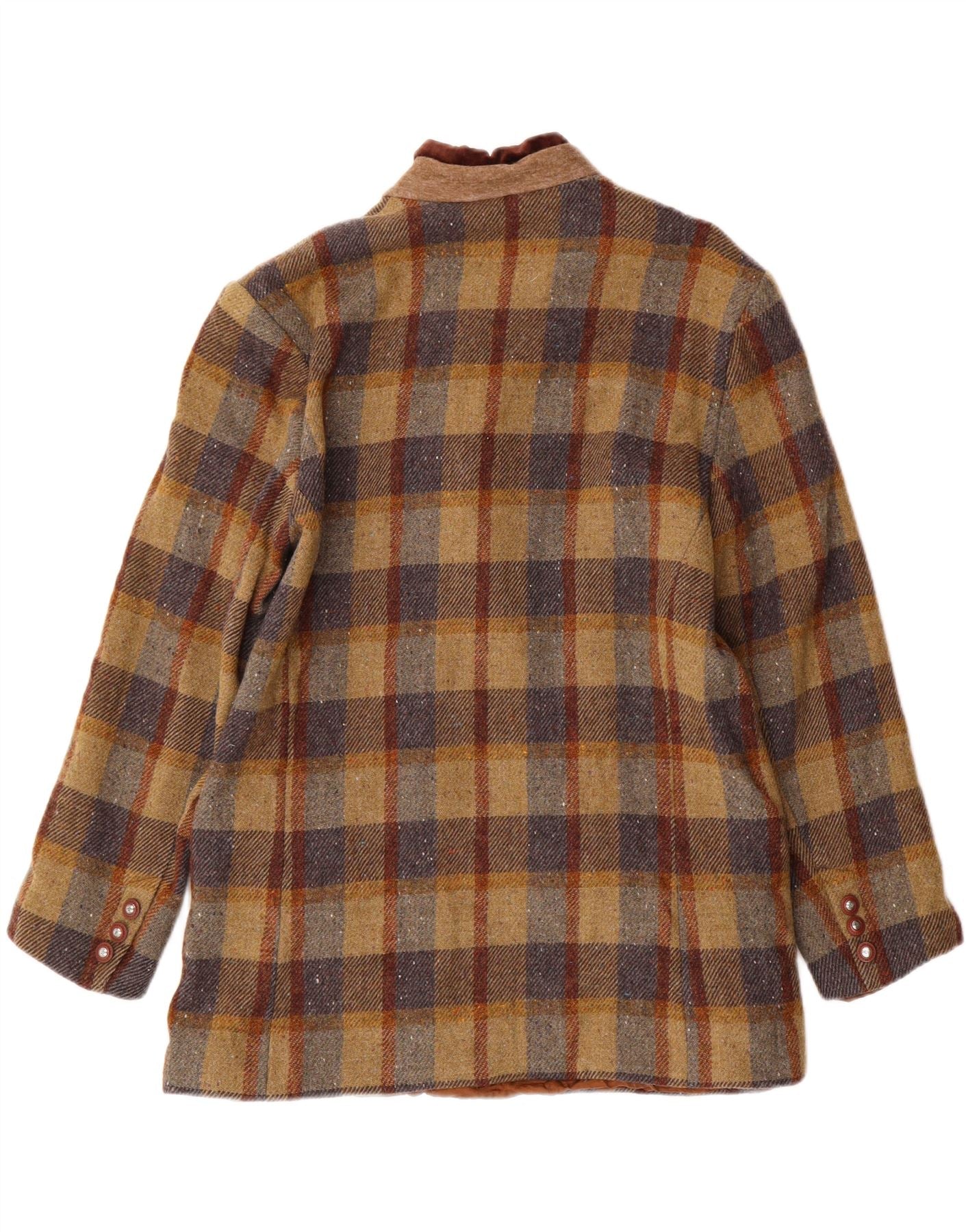 AVOCA Womens 2 Button 3/4 Sleeve Blazer Jacket UK 14 Medium Brown Check