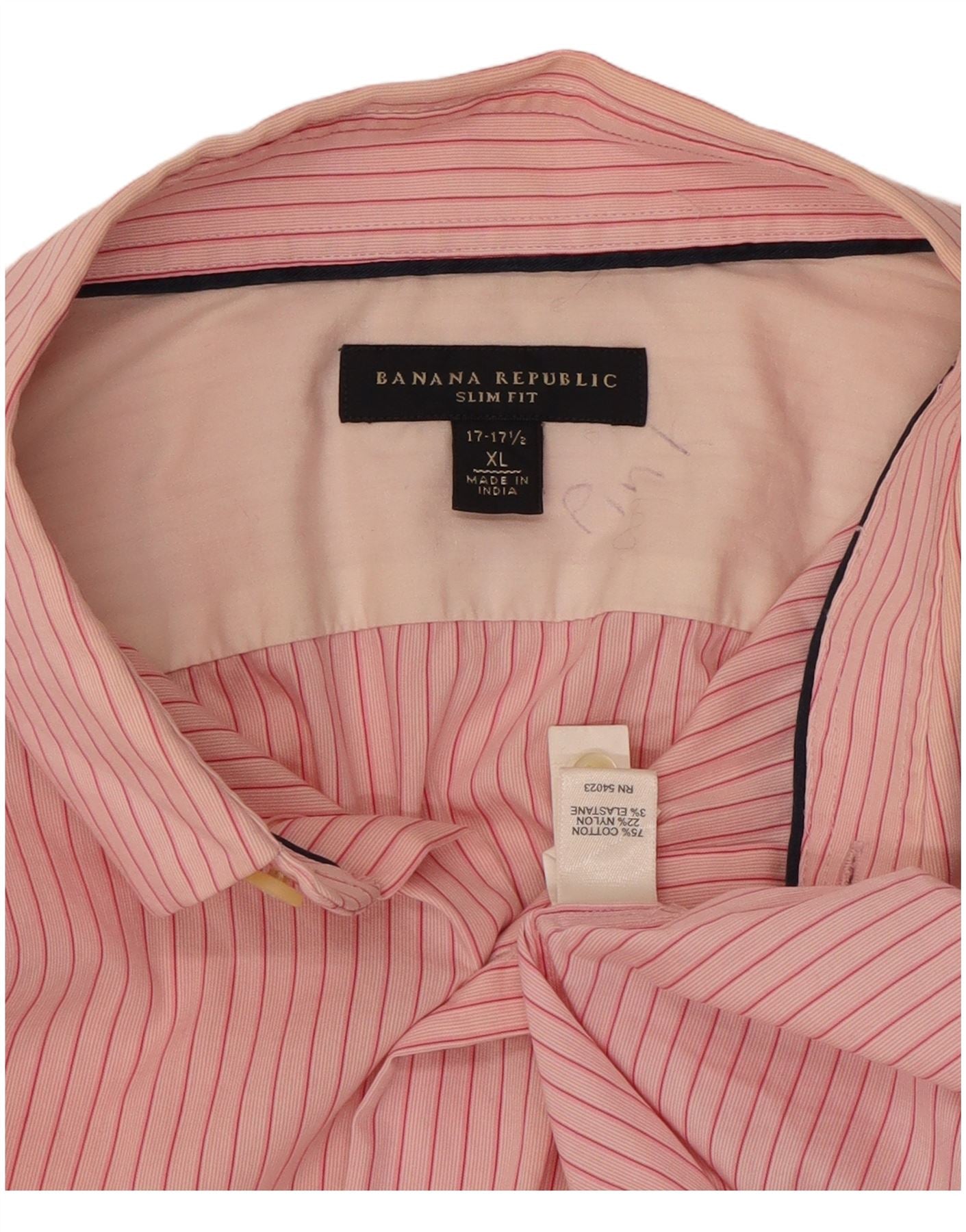 BANANA REPUBLIC Mens Slim Fit Shirt Size 17 1/2 XL Pink Pinstripe Cotton
