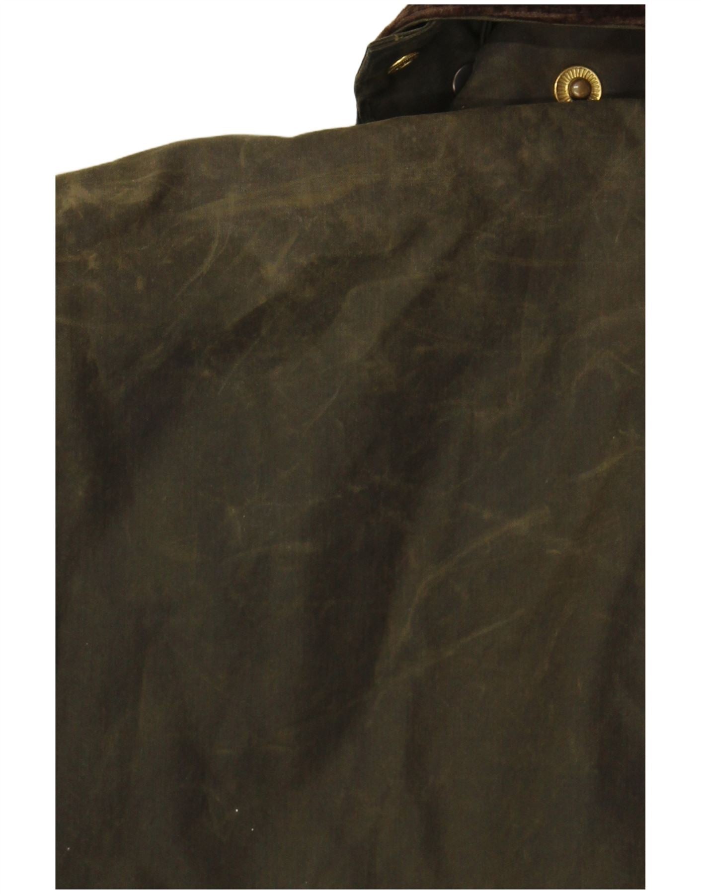 BARBOUR Mens Border Waxed Cotton Overcoat UK 38 Medium Khaki Cotton