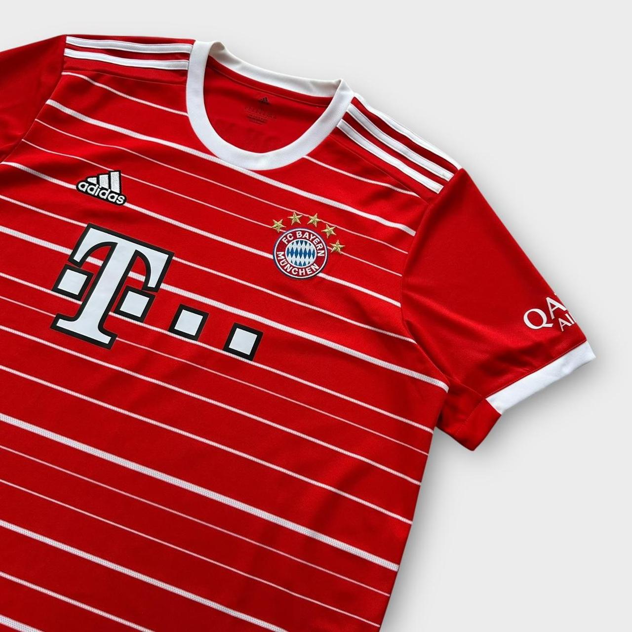 Μπλούζα εντός έδρας ποδοσφαίρου της Μπάγερν Μονάχου από τη σεζόν 2022/2023 από την Adidas με κεντημένα λογότυπα και χορηγό της T-Mobile στο στήθος. Έχει το όνομα του παίκτη «Musiala 42» στο πίσω μέρος