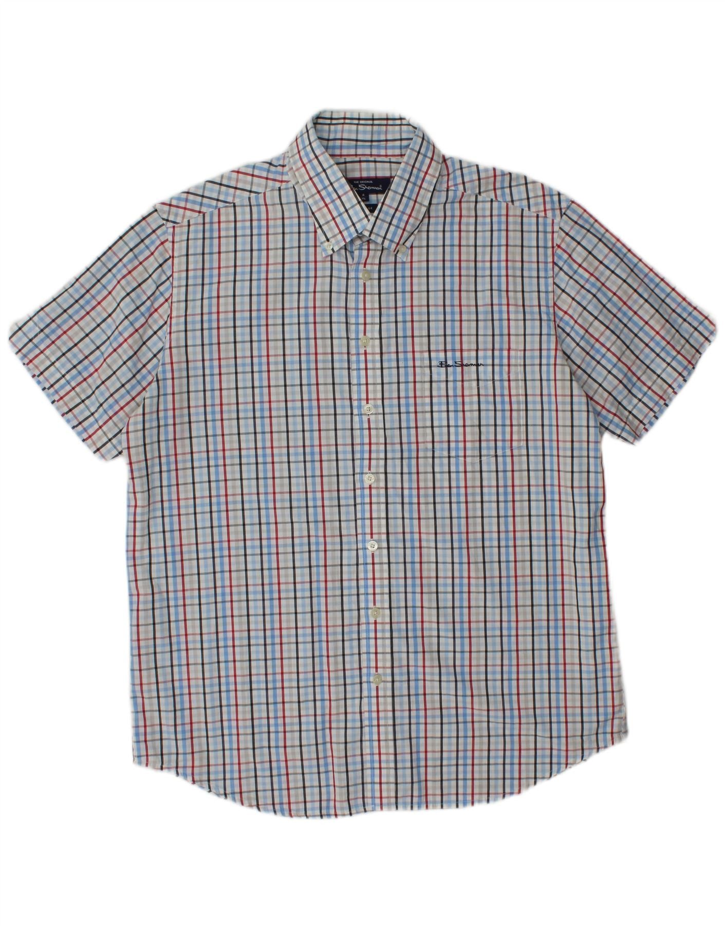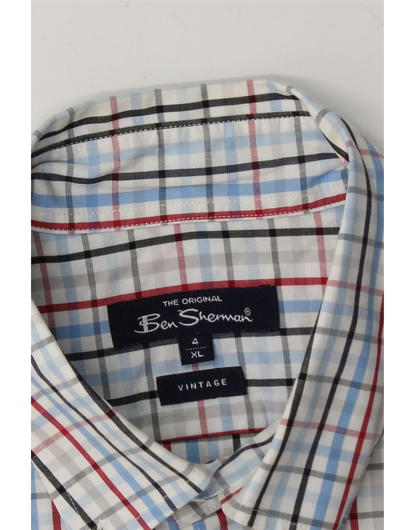 BEN SHERMAN Mens Vintage Short Sleeve Shirt XL Blue Check Cotton