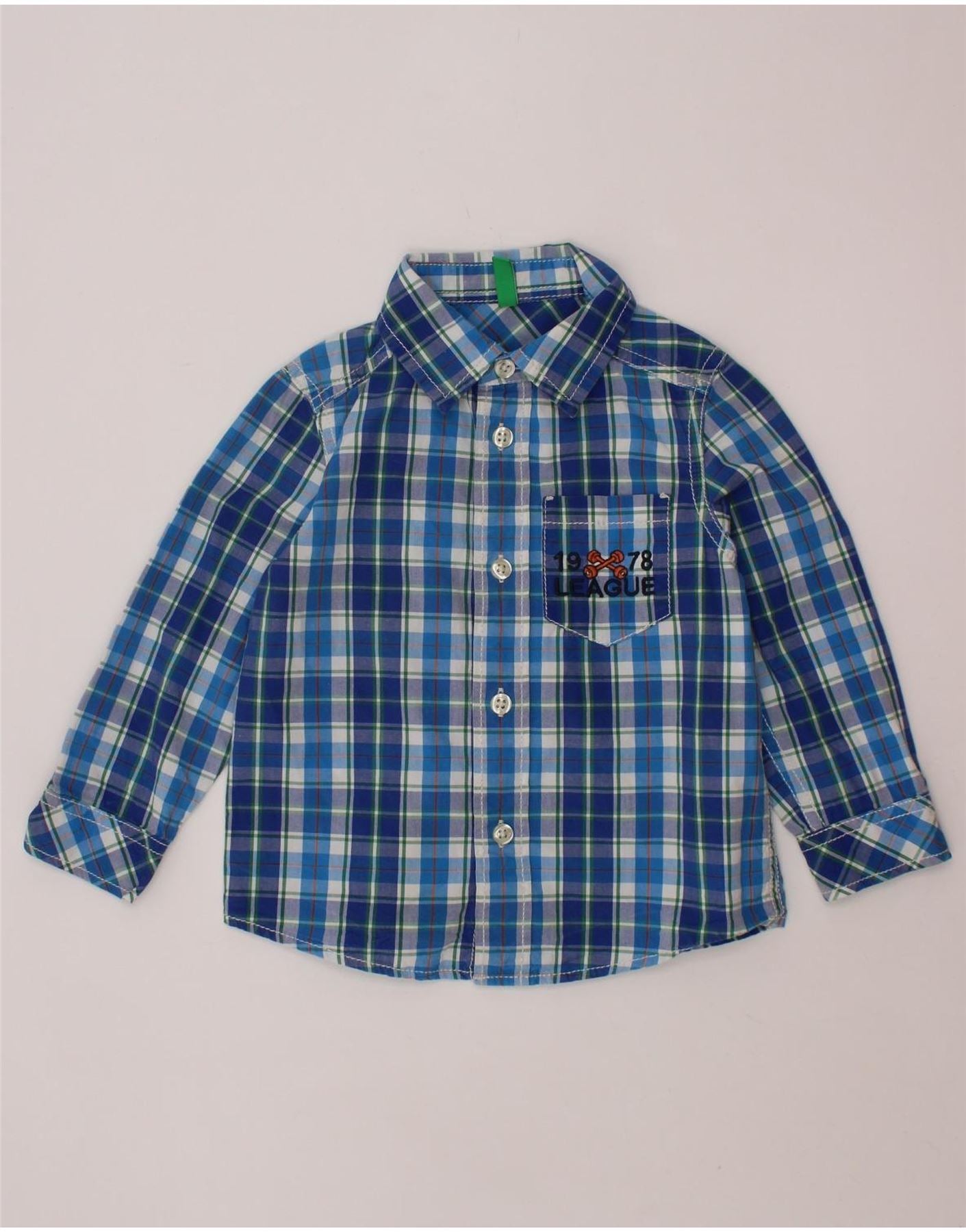 BENETTON Βρεφικό πουκάμισο αγοριών 18-24 μηνών Μπλε καρό βαμβακερό