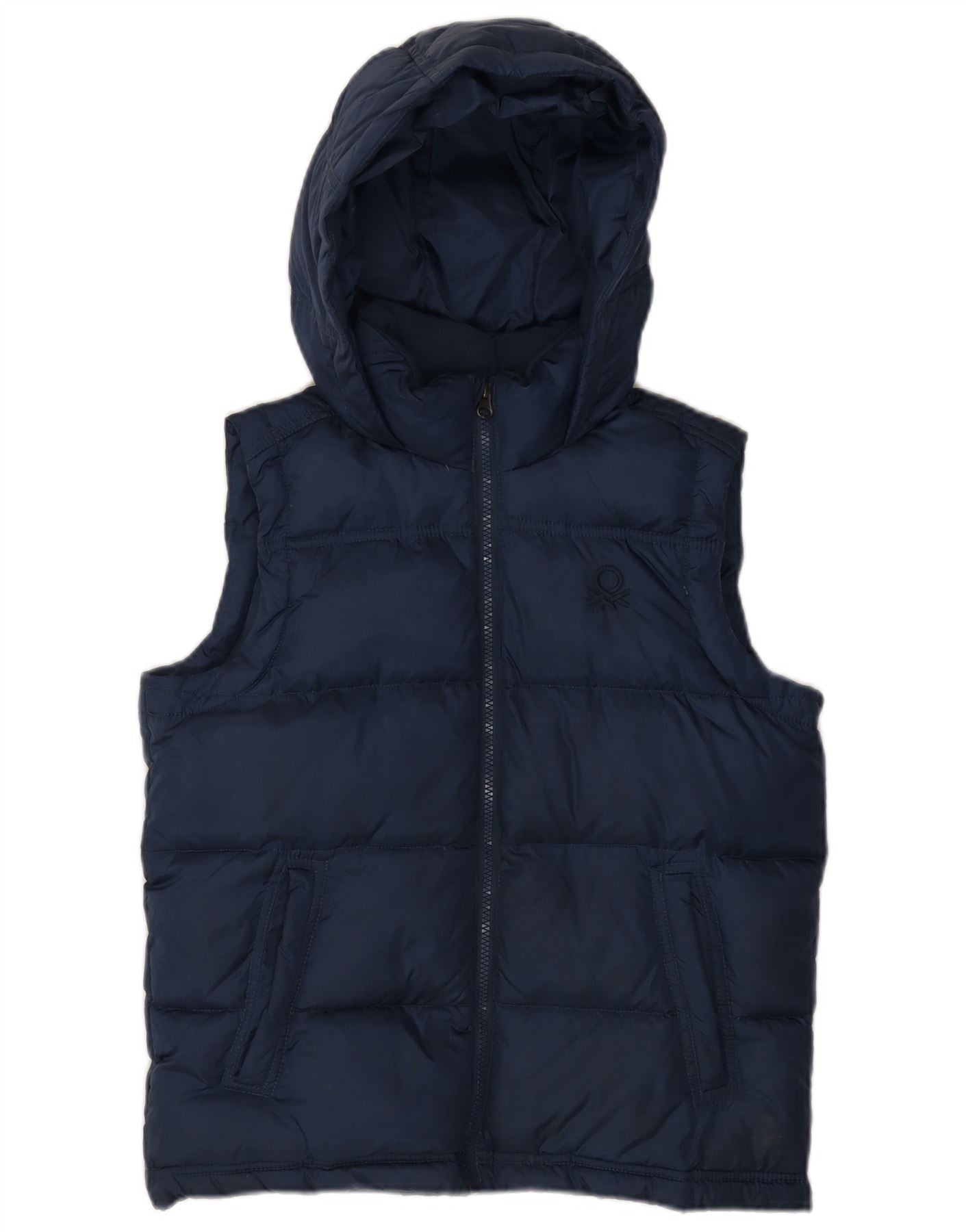 BENETTON Boys Hooded Gilet 11-12 Years 2XL Navy Blue Polyamide