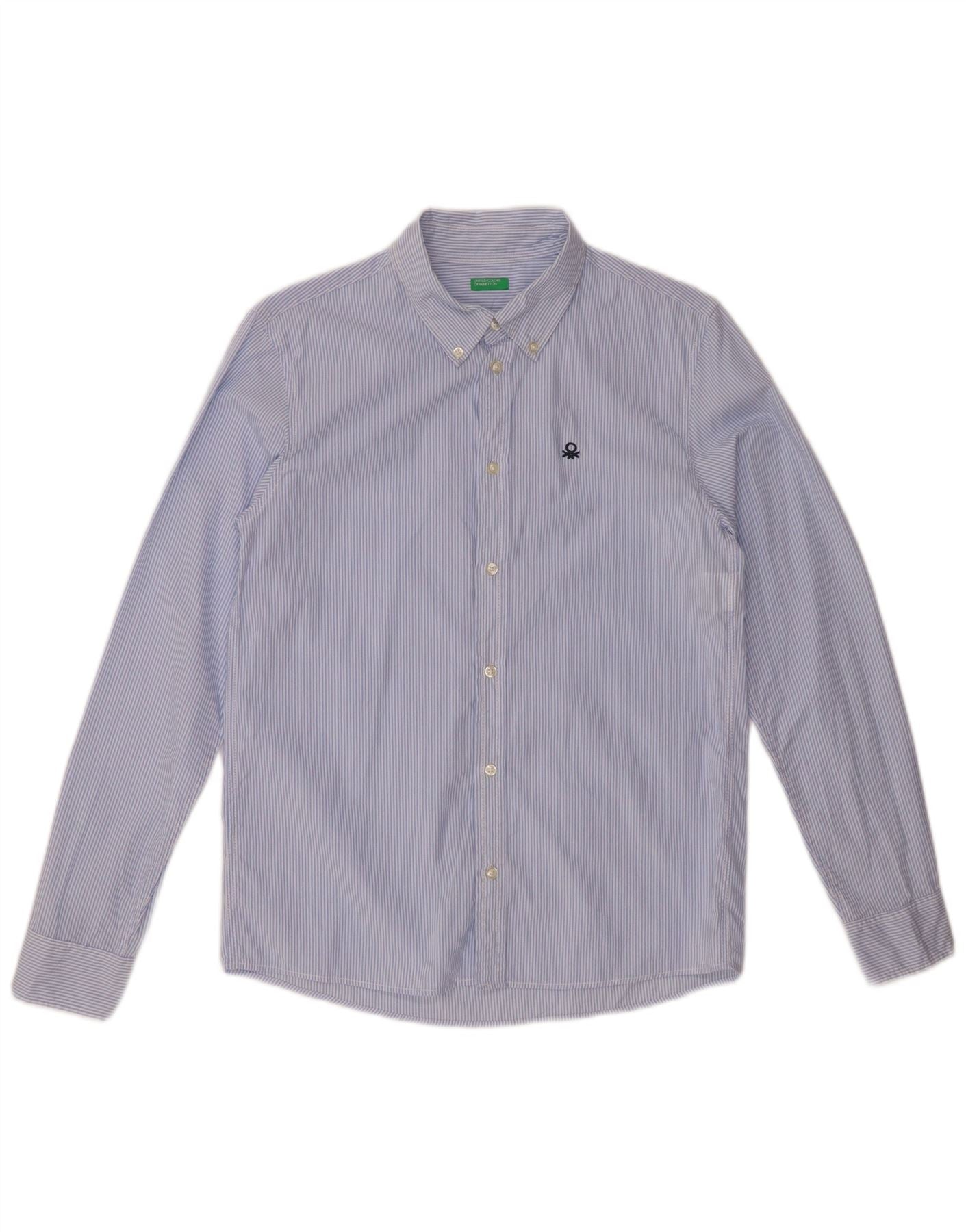 BENETTON Πουκάμισο για αγόρι 13-14 ετών 3XL Μπλε ρίγες βαμβακερό