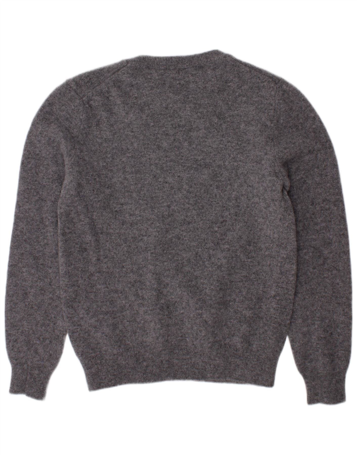 BENETTON Girls Crew Neck Jumper πουλόβερ 9-10 ετών Γκρι μαλλί Merino