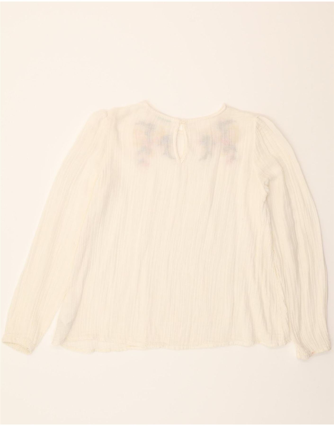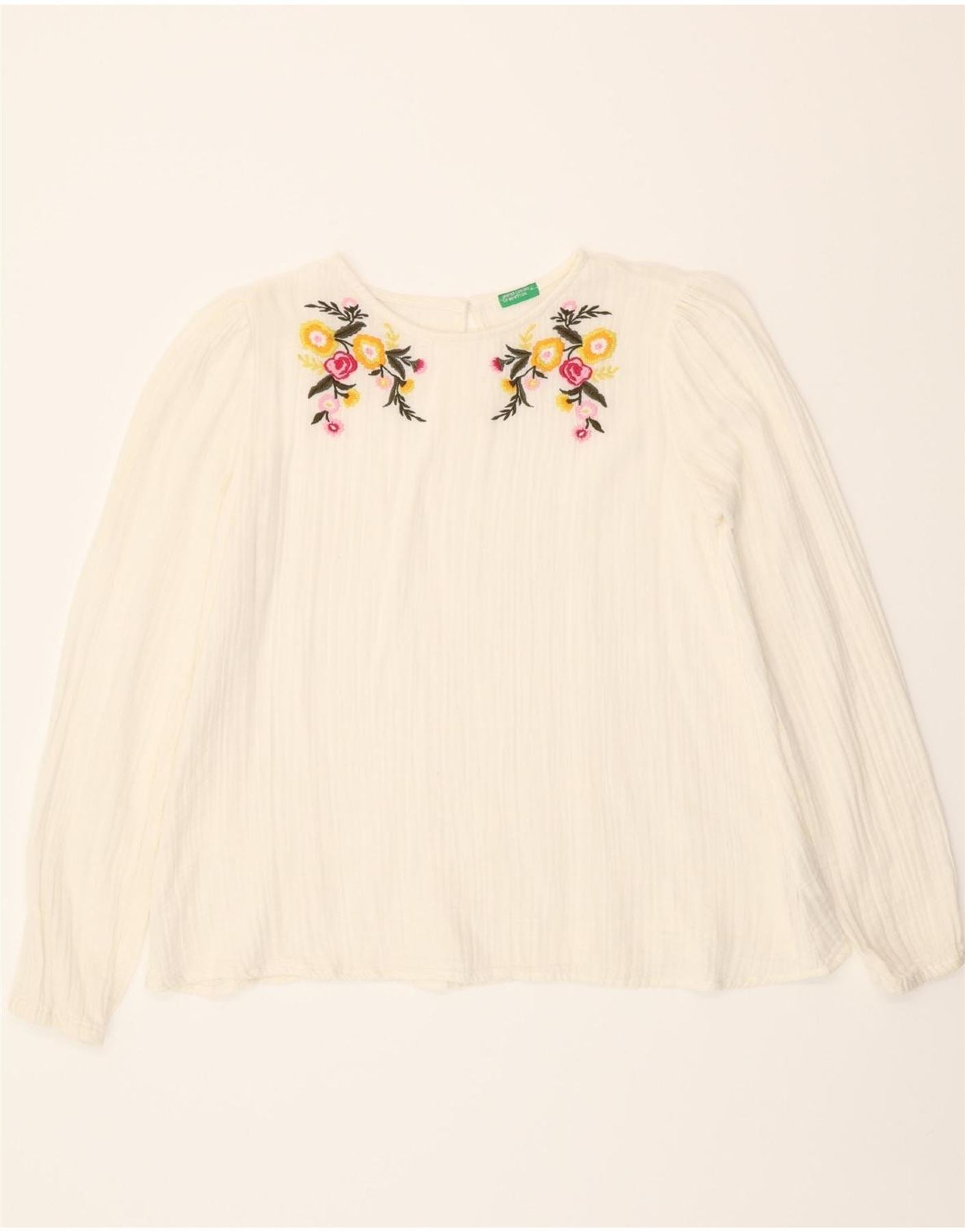 BENETTON Girls Long Sleeve Blouse Top 13-14 Years 3XL White Floral Cotton