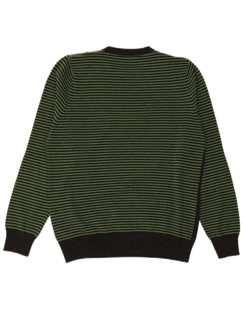 BENETTON Mens Crew Neck Jumper Sweater Large Green Argyle/Diamond Wool