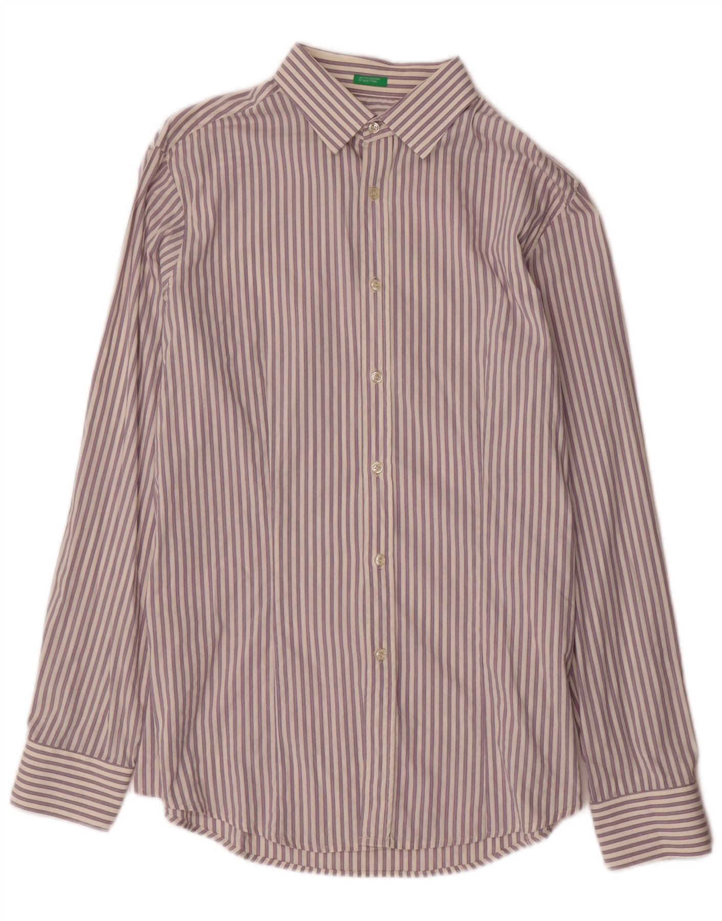BENETTON Ανδρικό πουκάμισο 2XL Μωβ ριγέ βαμβακερό