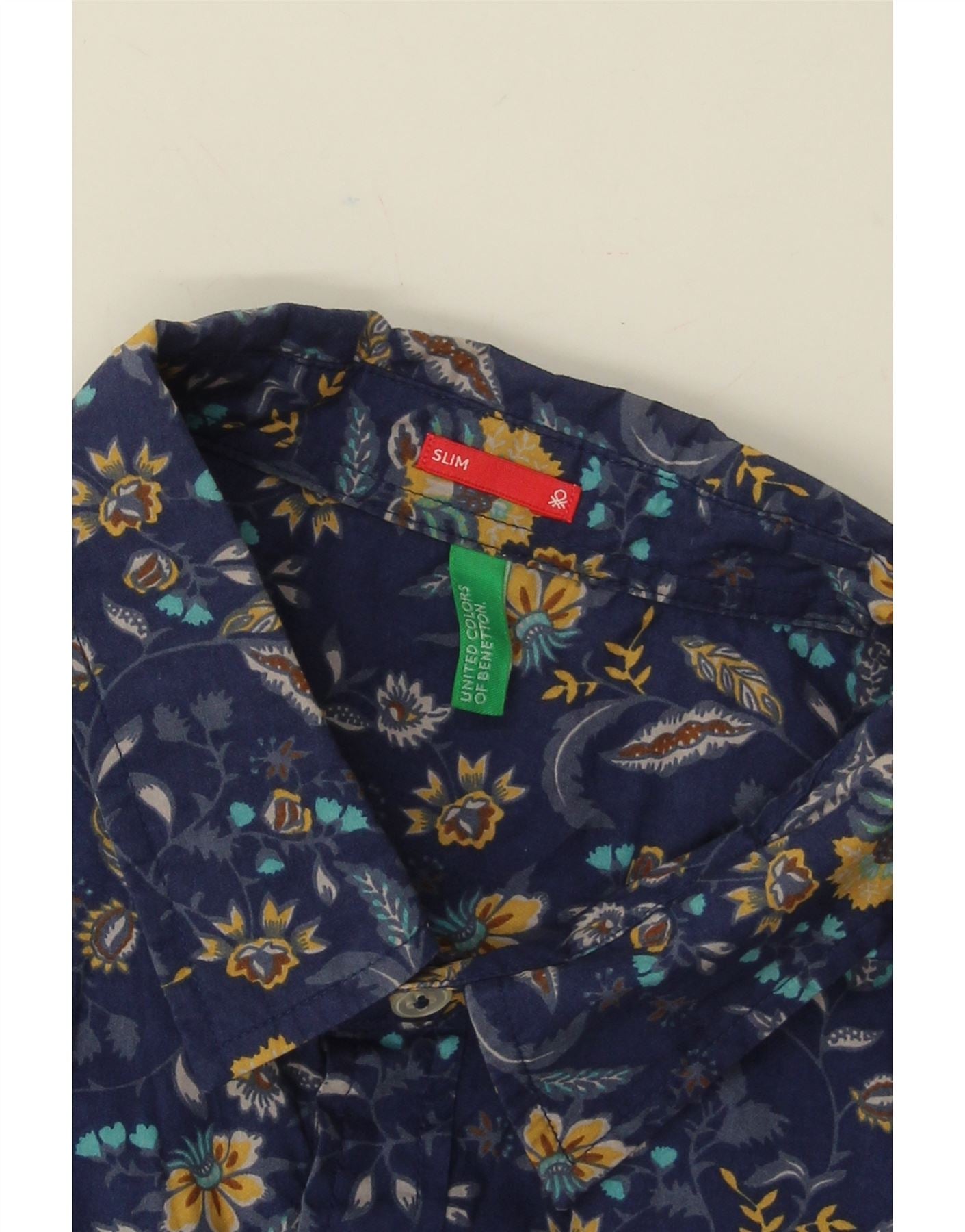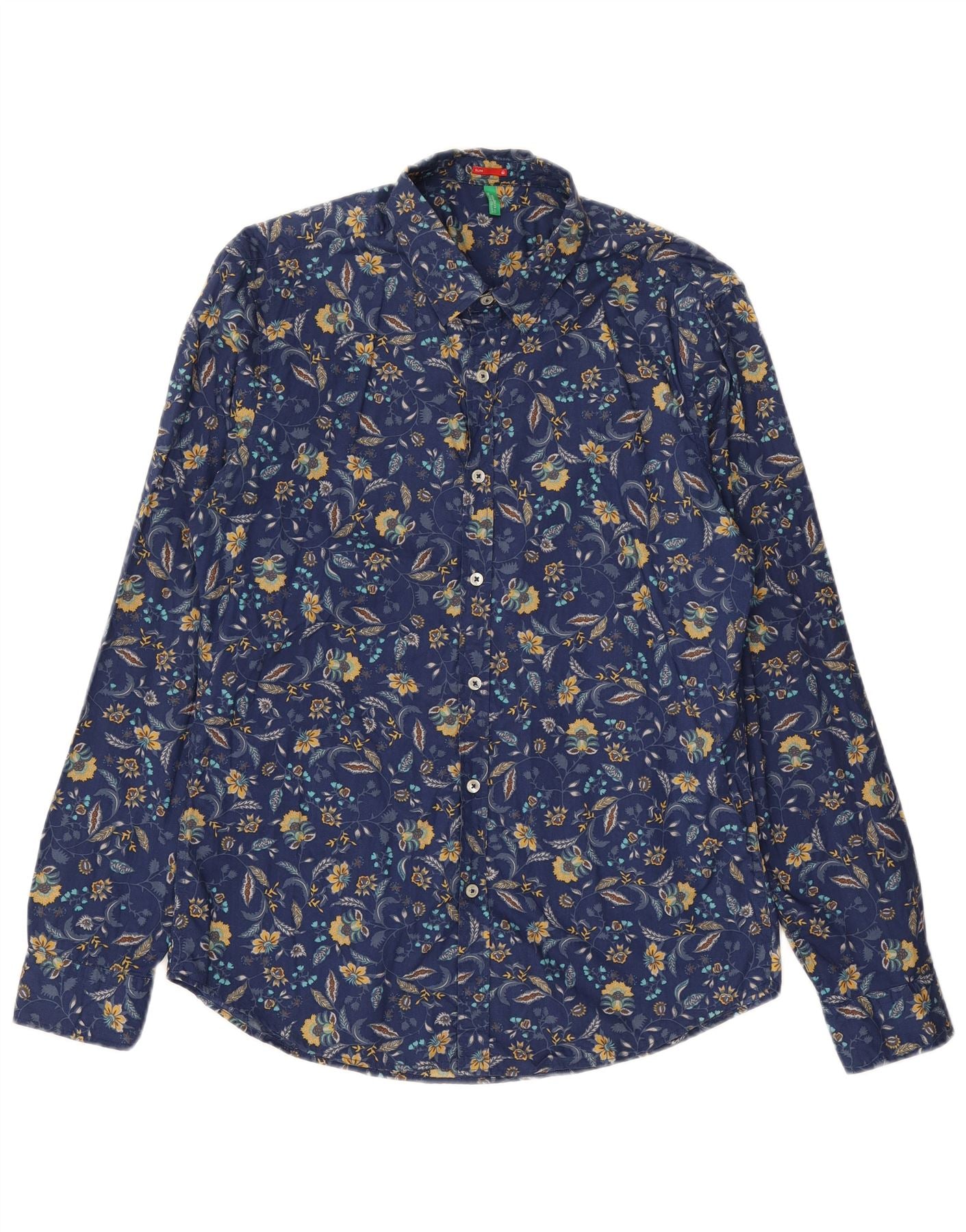 BENETTON Ανδρικό Slim Πουκάμισο Medium Navy Blue Floral