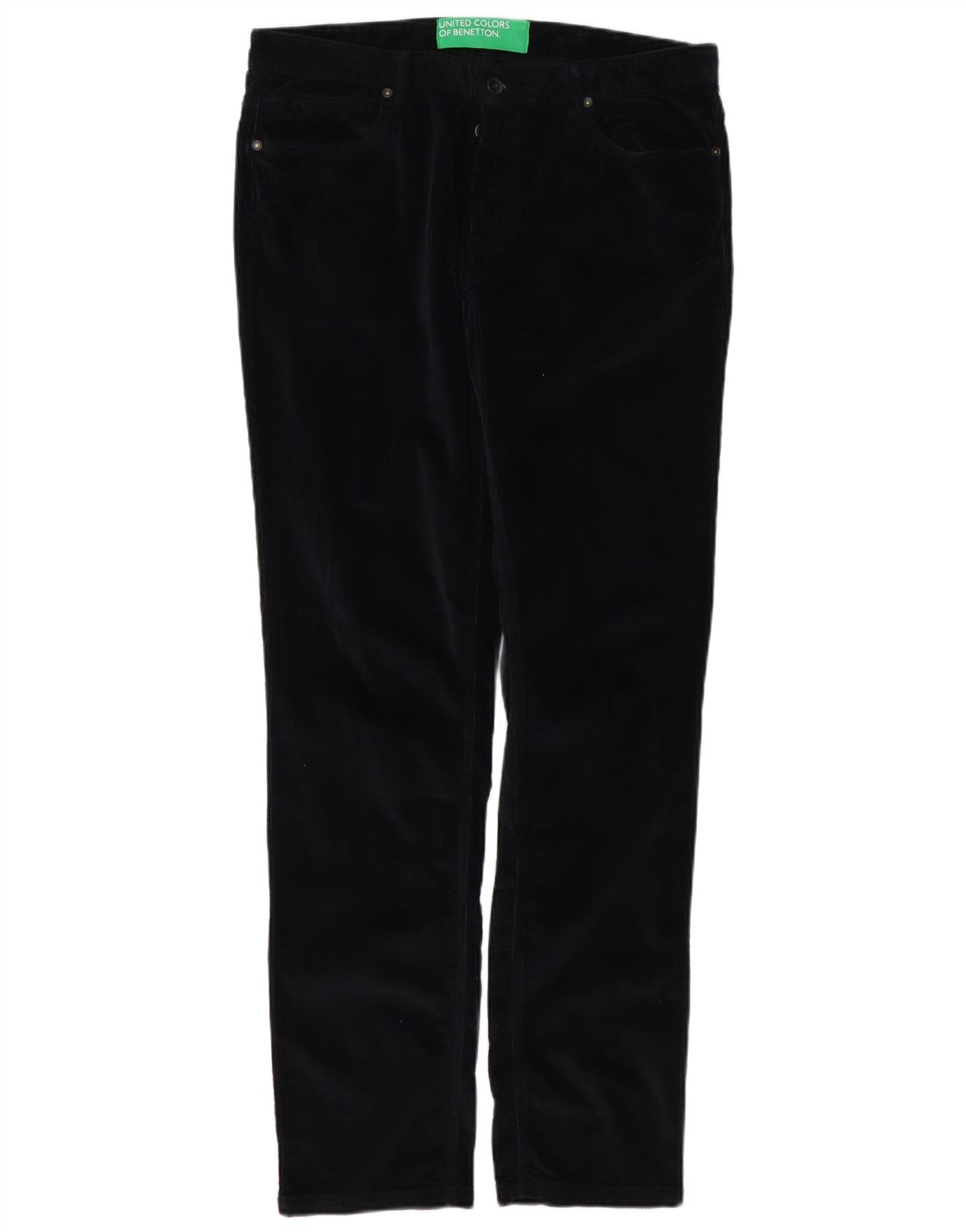 BENETTON Mens Straight Corduroy Trousers IT 48 Medium W32 L32 Black Cotton