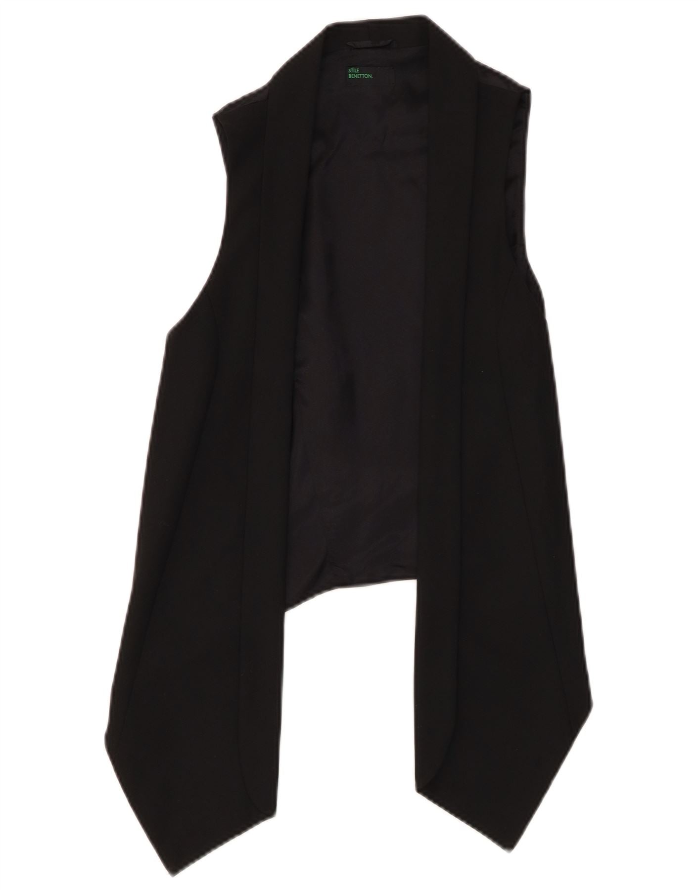 BENETTON Γυναικείο Ασύμμετρο Ανοιχτό Γιλέκο UK 12 Μεσαίο Μαύρο
