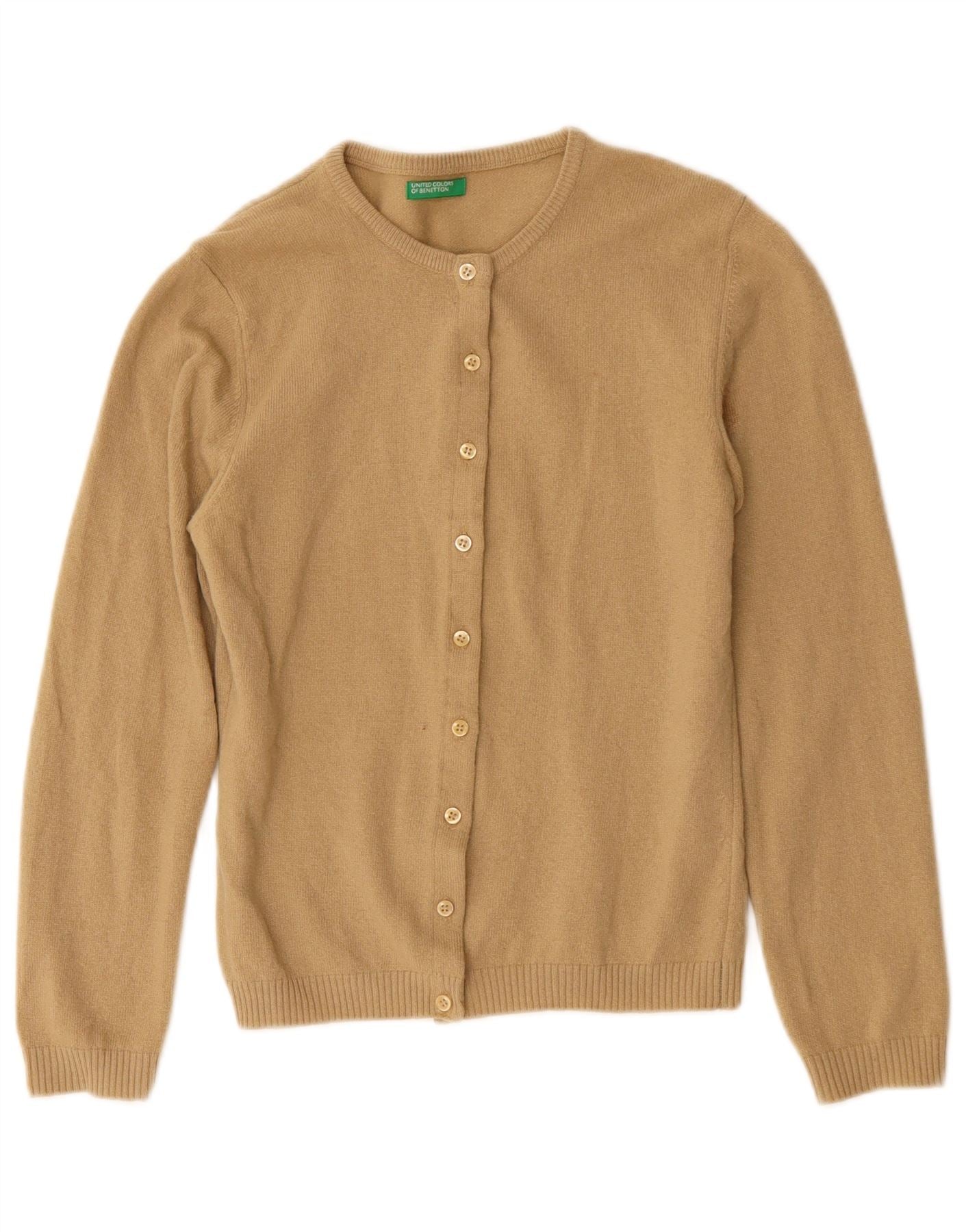BENETTON Γυναικείο πουλόβερ ζακέτα UK 10 Μικρό μπεζ παρθένο μαλλί
