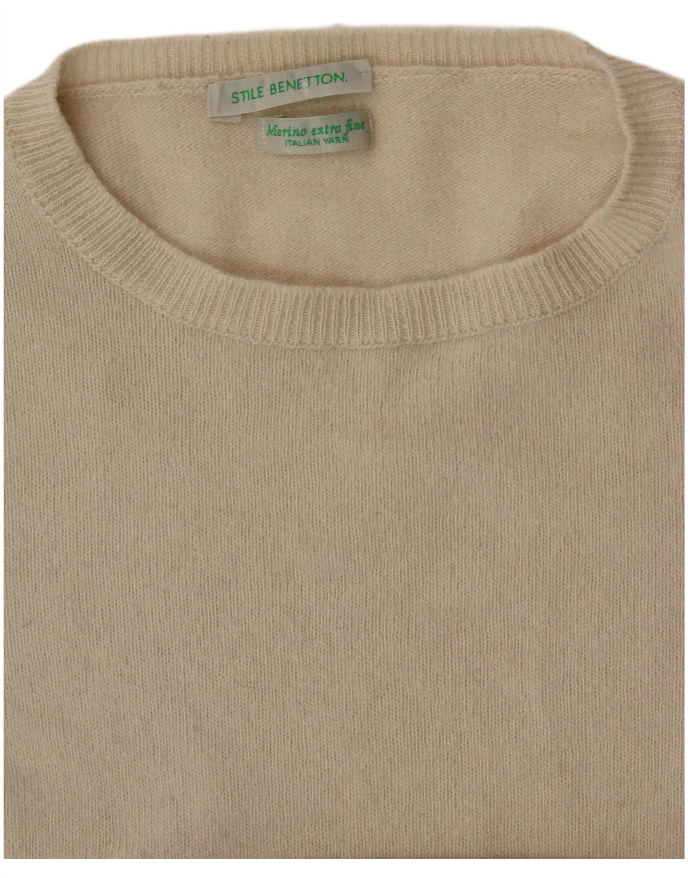 BENETTON Γυναικείο πουλόβερ με λαιμόκοψη UK 4 XS μπεζ μαλλί Merino