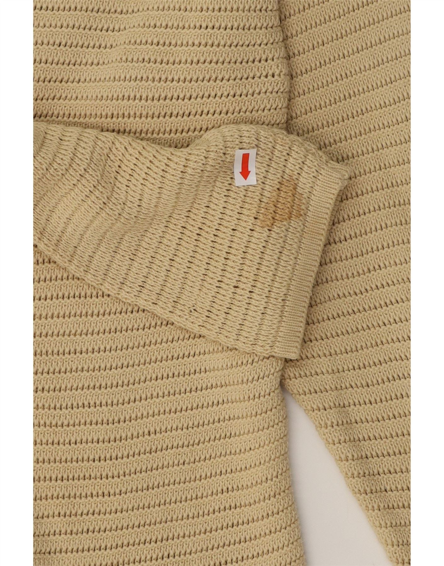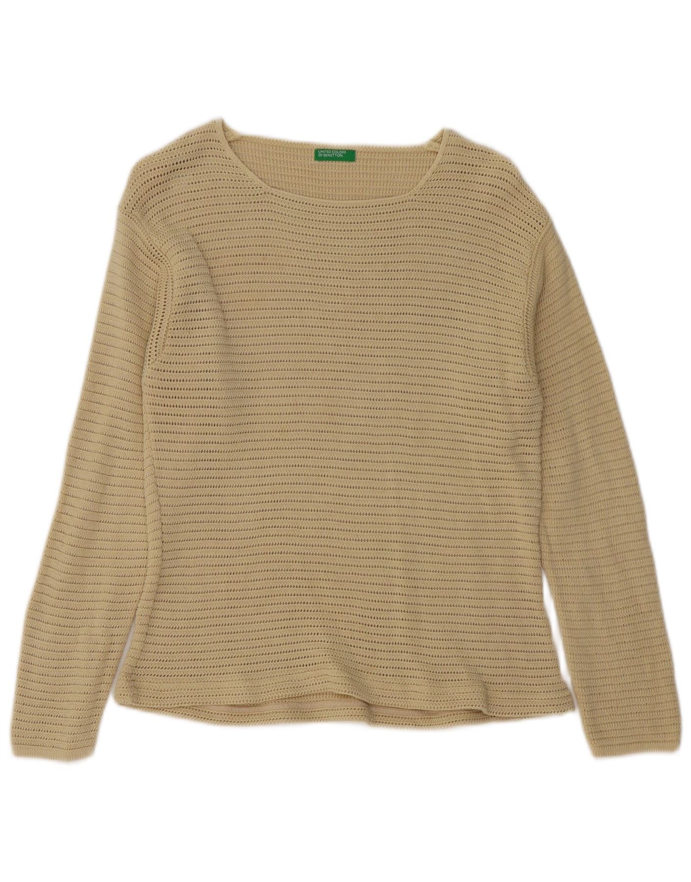 BENETTON Γυναικείο βελονάκι πουλόβερ με λαιμόκοψη UK 12 μεσαίο βαμβακερό μπεζ