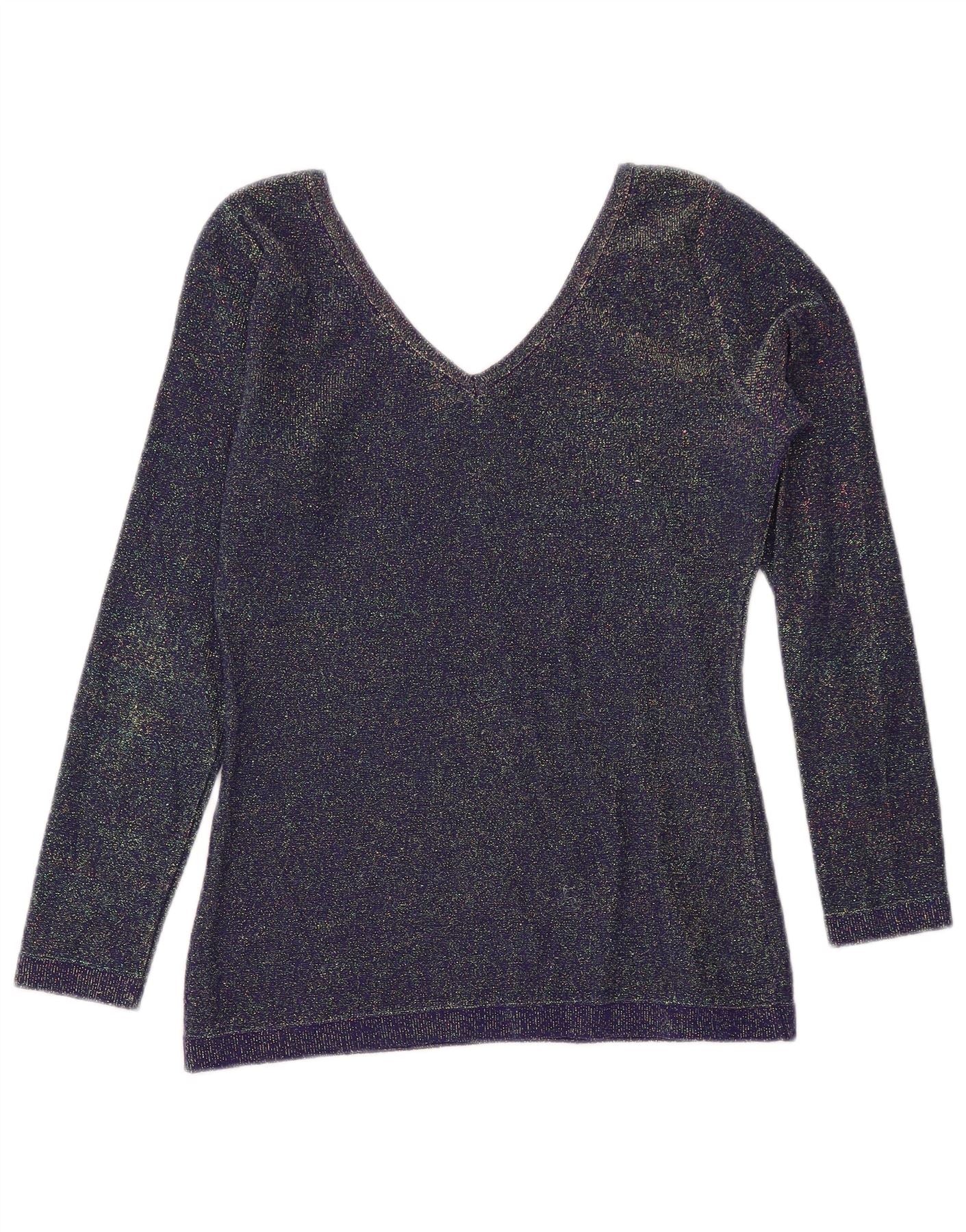 BENETTON Γυναικείο πουλόβερ με λαιμόκοψη σε σχήμα V UK 10 Small Navy Blue Flecked