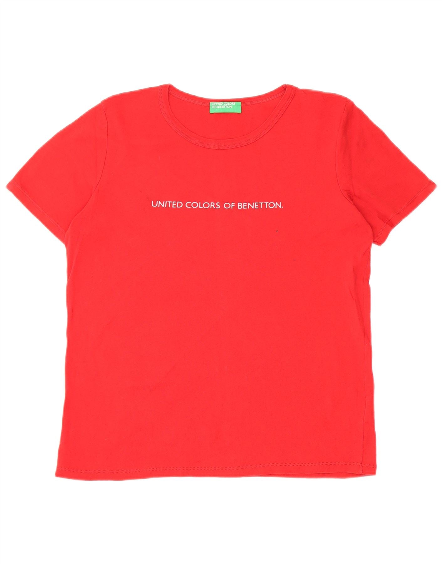 BENETTON Γυναικείο γραφικό T-Shirt Top UK 14 μεγάλο κόκκινο βαμβακερό