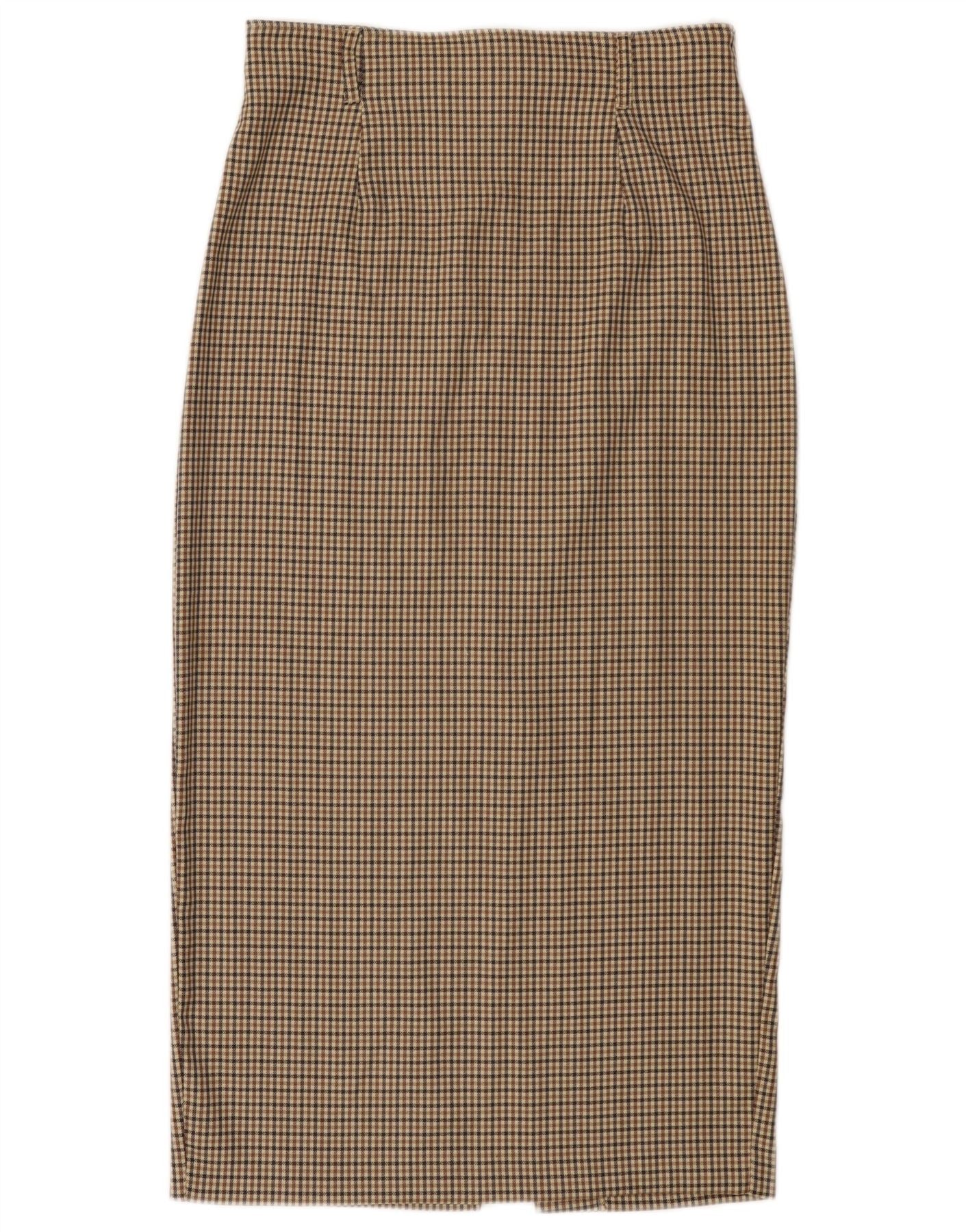 BENETTON Γυναικεία Midi Φούστα IT 44 Medium W28 Beige Check Wool