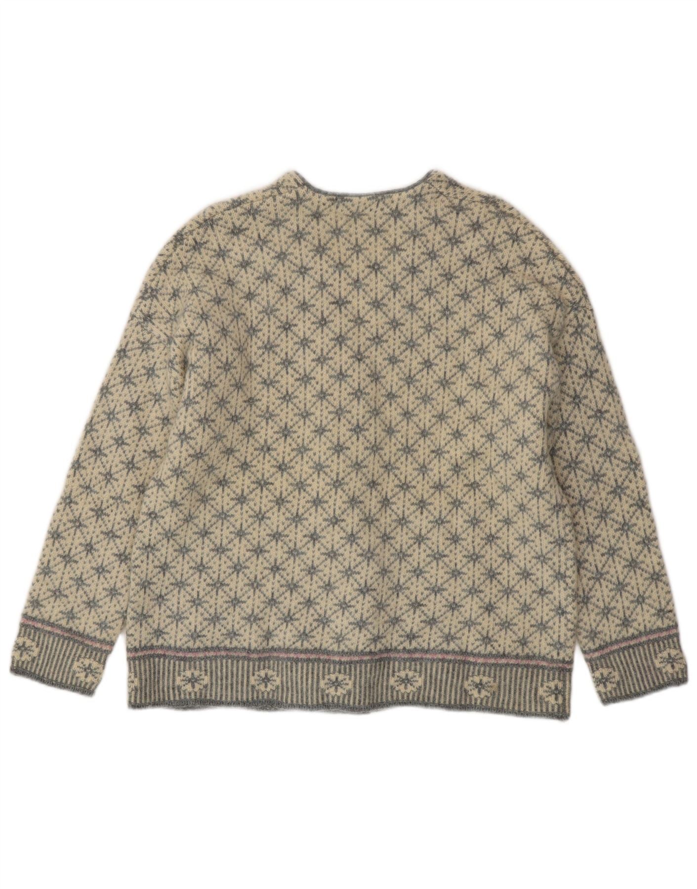 BENETTON Γυναικείο πουλόβερ με ζακέτα μεγάλου μεγέθους UK 10 Small Grey Fair Isle