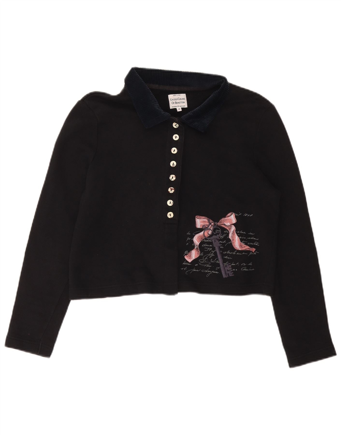 BENETTON Γυναικείο Oversized Graphic Crop Polo UK 10 Small Black
