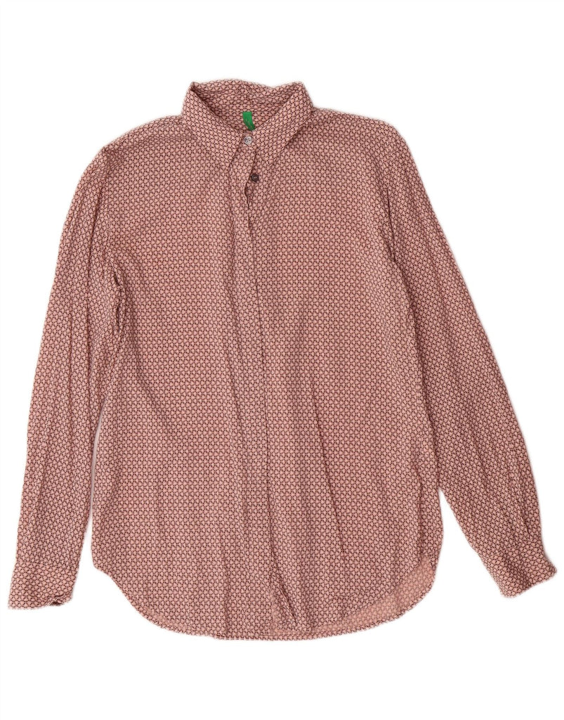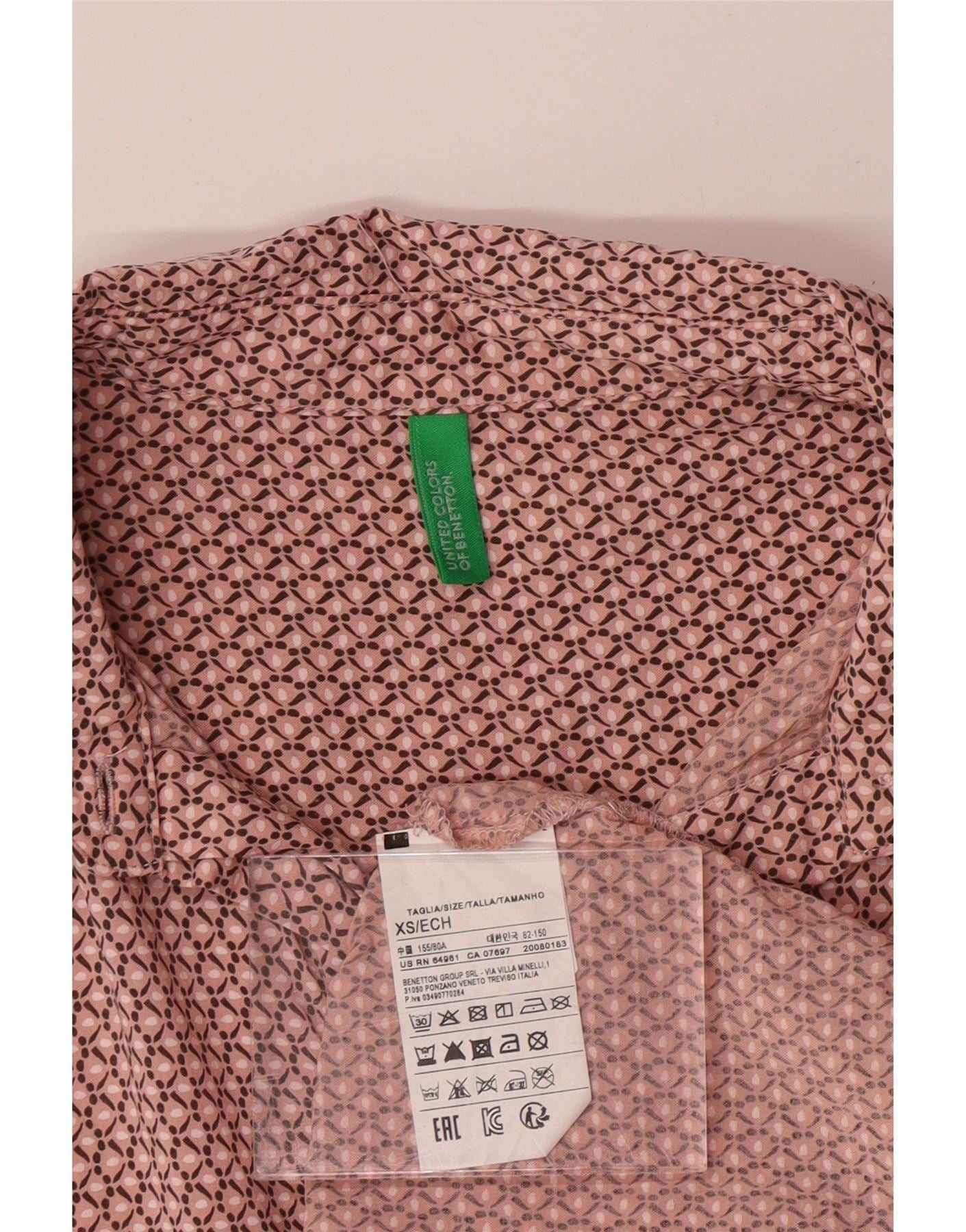 BENETTON Γυναικείο Longline πουκάμισο UK 6 XS Pink Geometric Modal