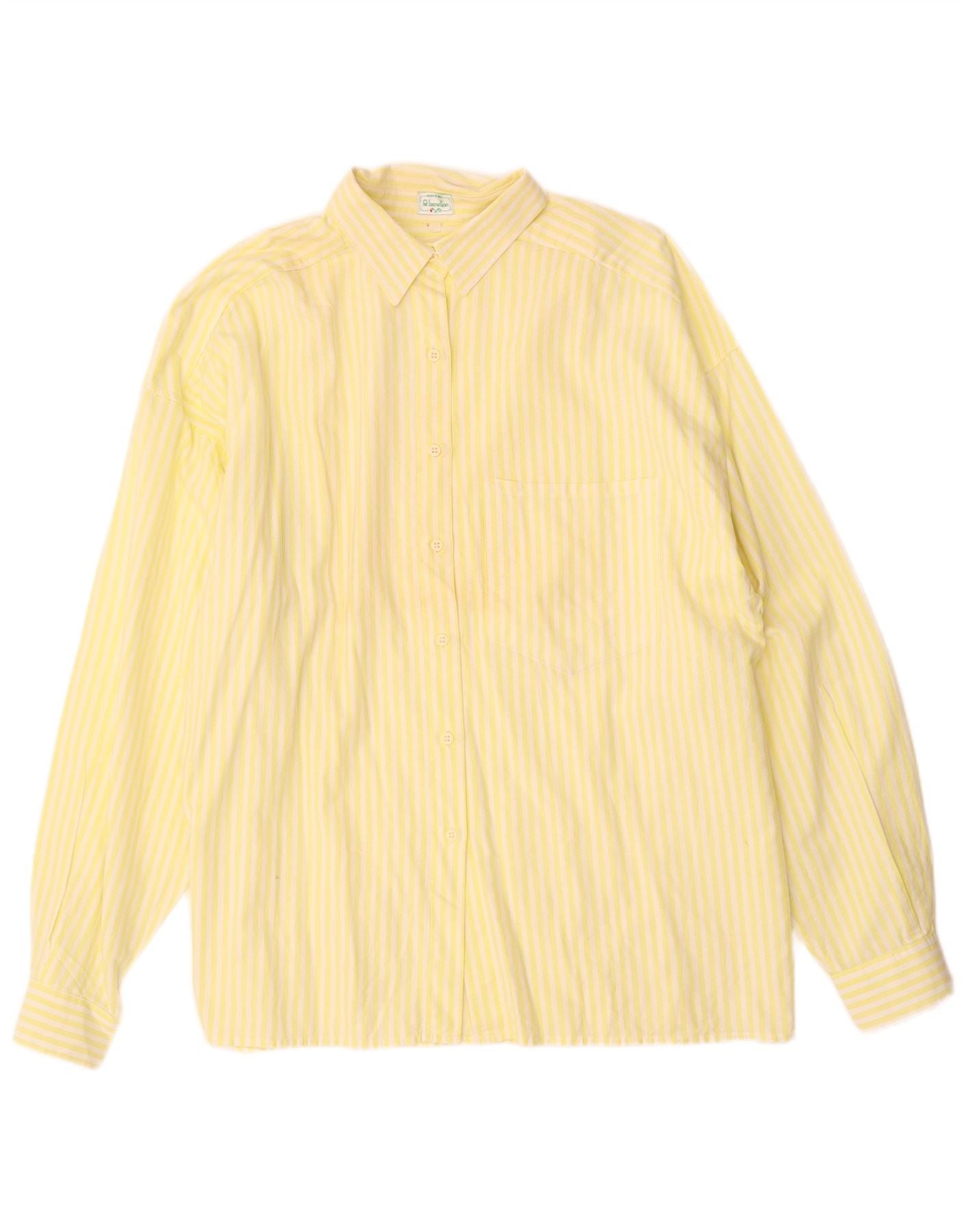 BENETTON Γυναικείο πουκάμισο μεγάλου μεγέθους IT 46 Μεγάλο κίτρινο βαμβακερό ριγέ