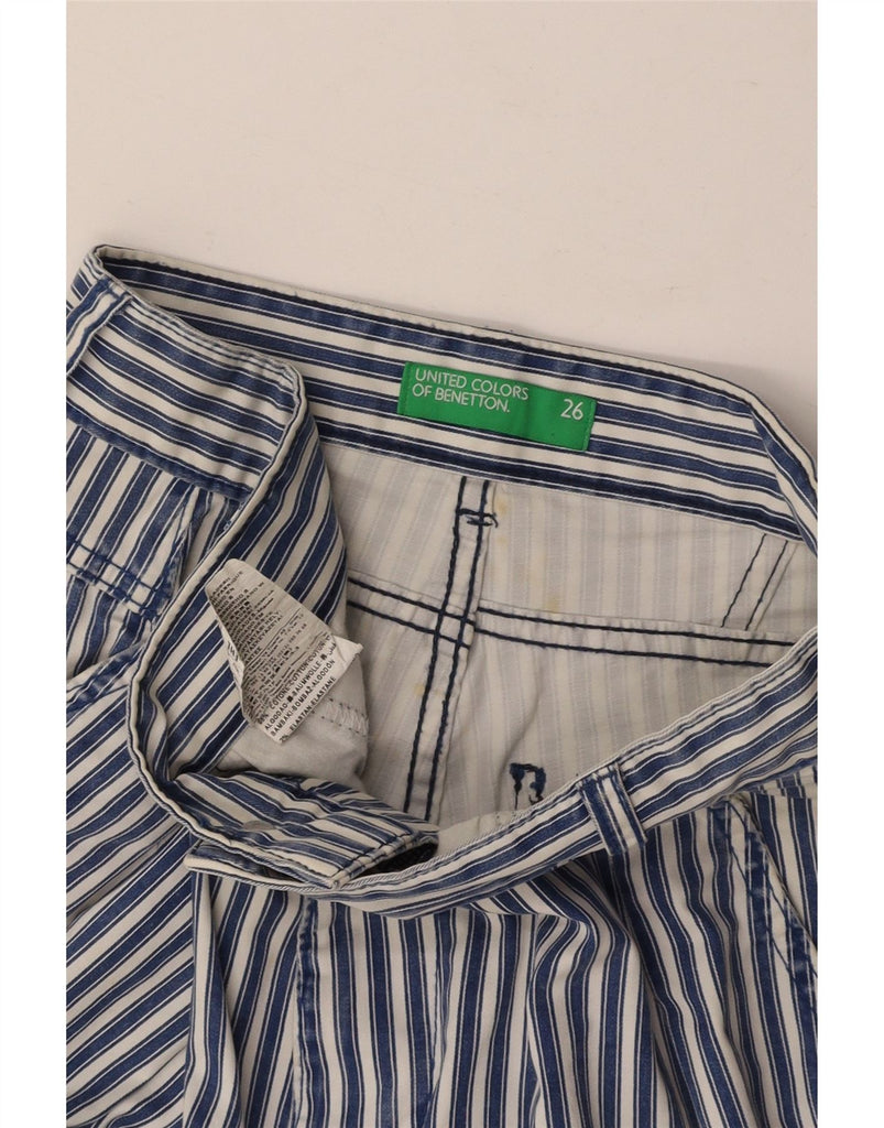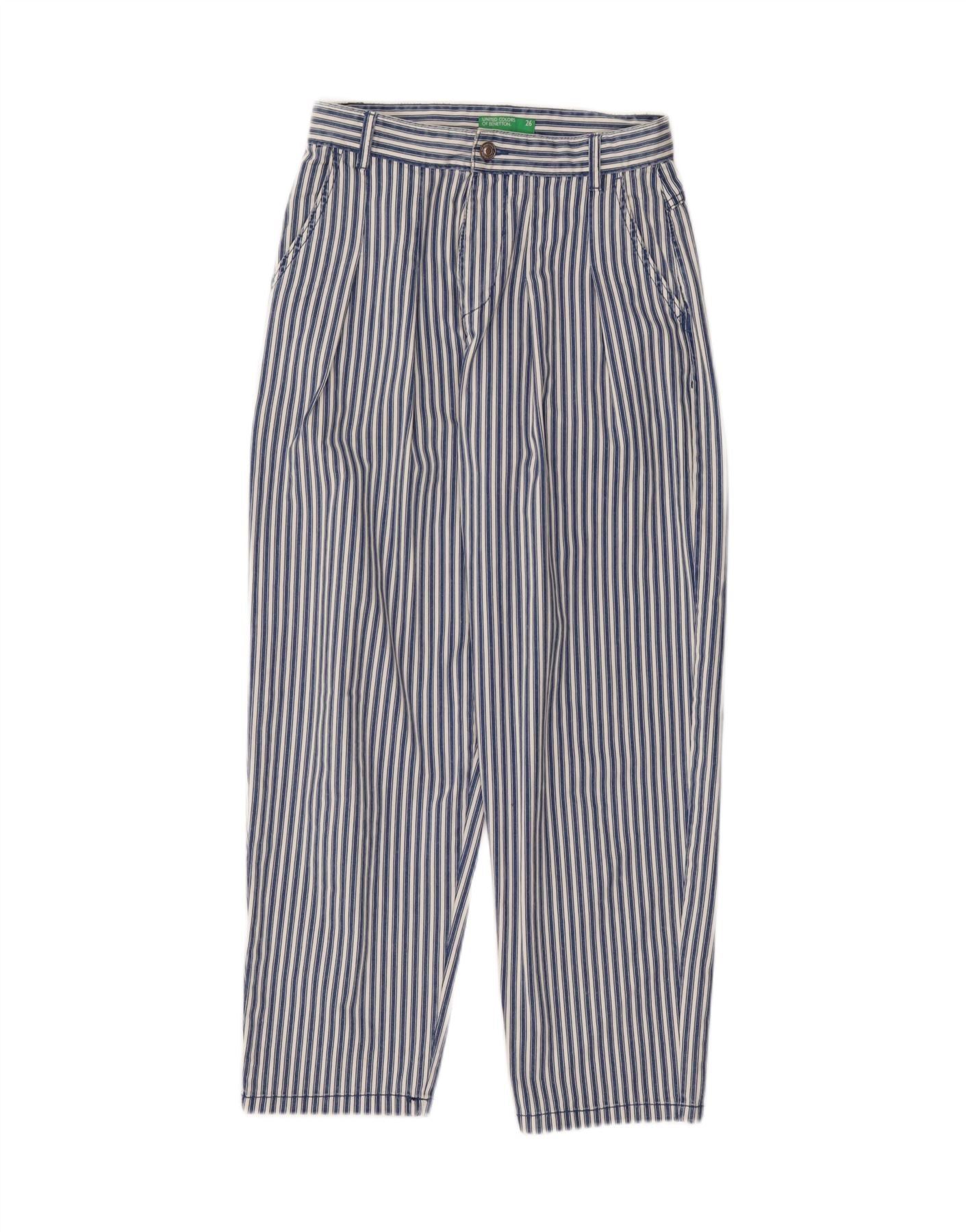 BENETTON Womens Pegged Cropped Trousers W26 L25 Blue Striped Cotton