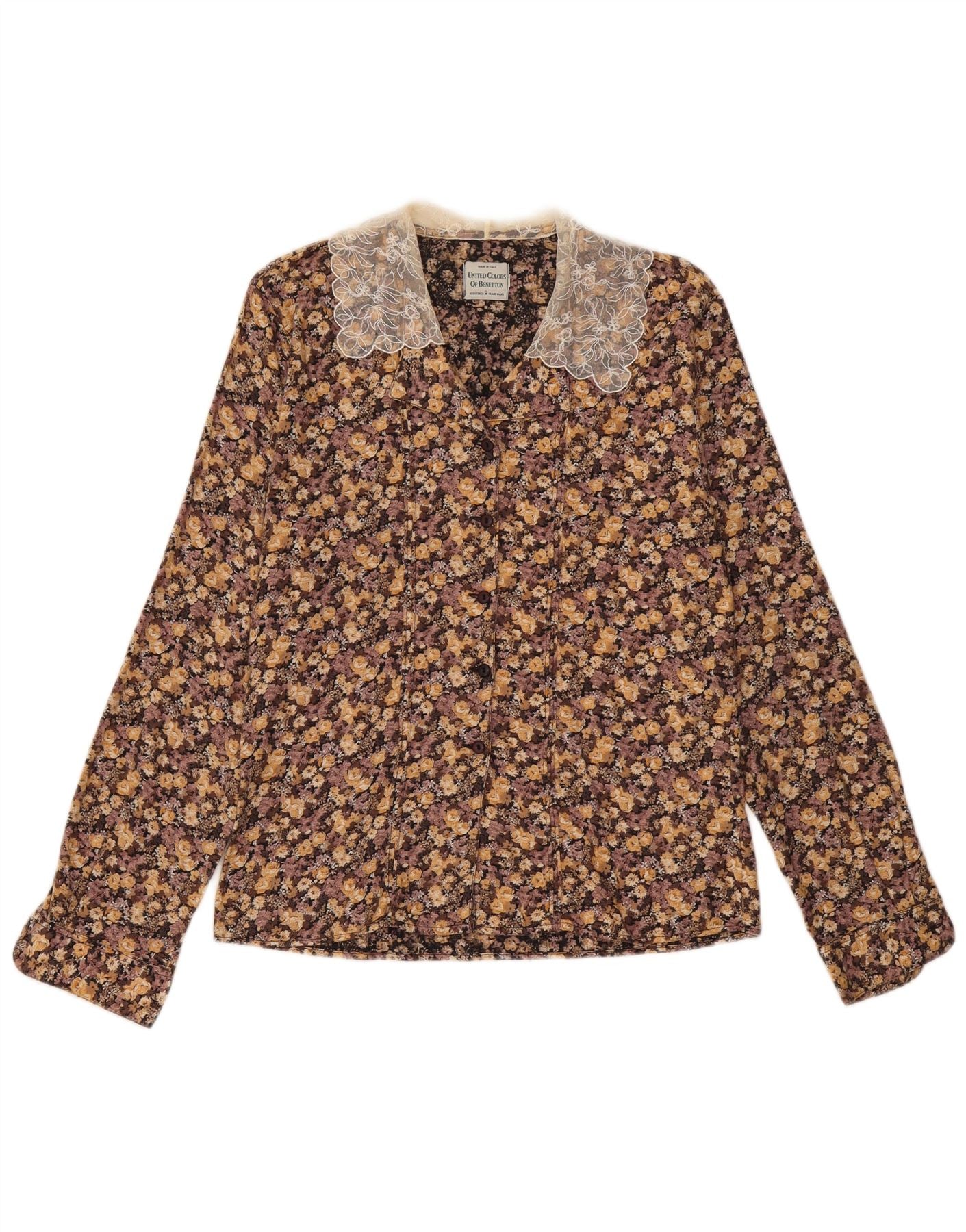 BENETTON Γυναικείο πουκάμισο Μπλούζα UK 12 Μεσαίο Καφέ Floral