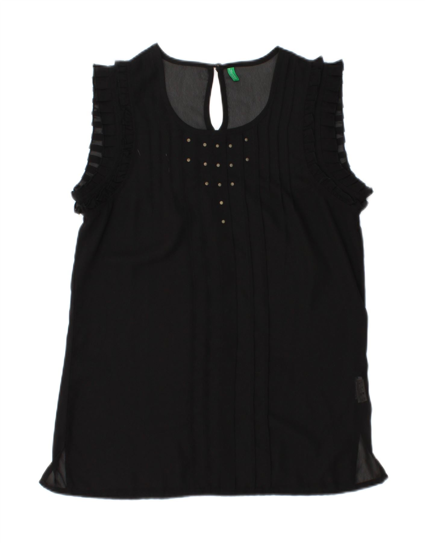 BENETTON Womens Sleeveless Blouse Top UK 10 Small Black Polyester