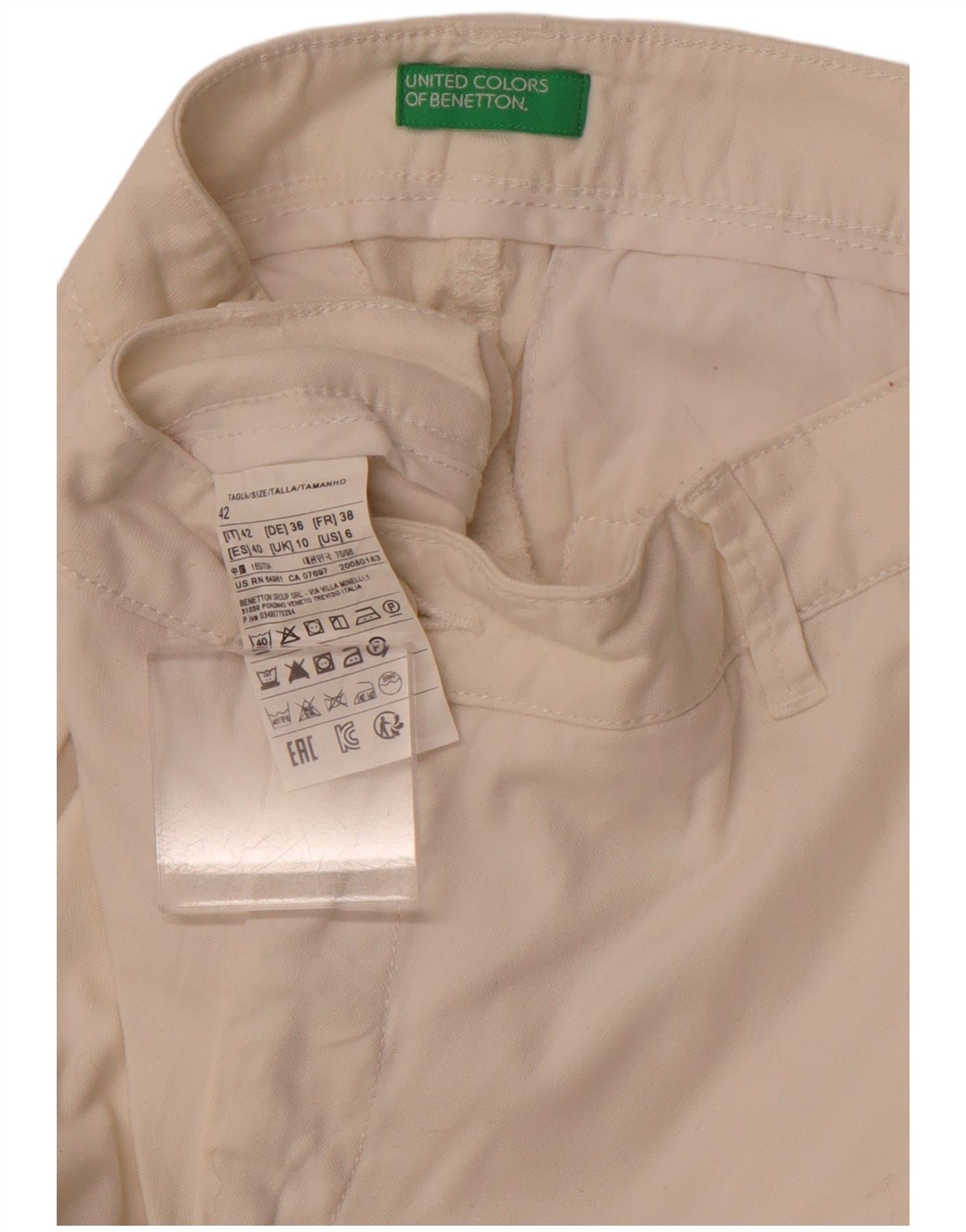 BENETTON Γυναικείο ίσιο παντελόνι Chino UK 10 Small W28 L28 Λευκό βαμβακερό