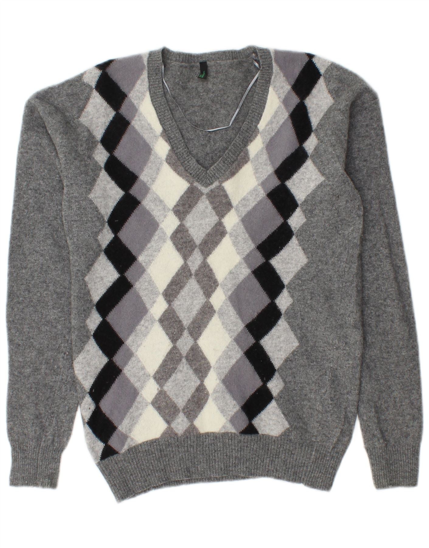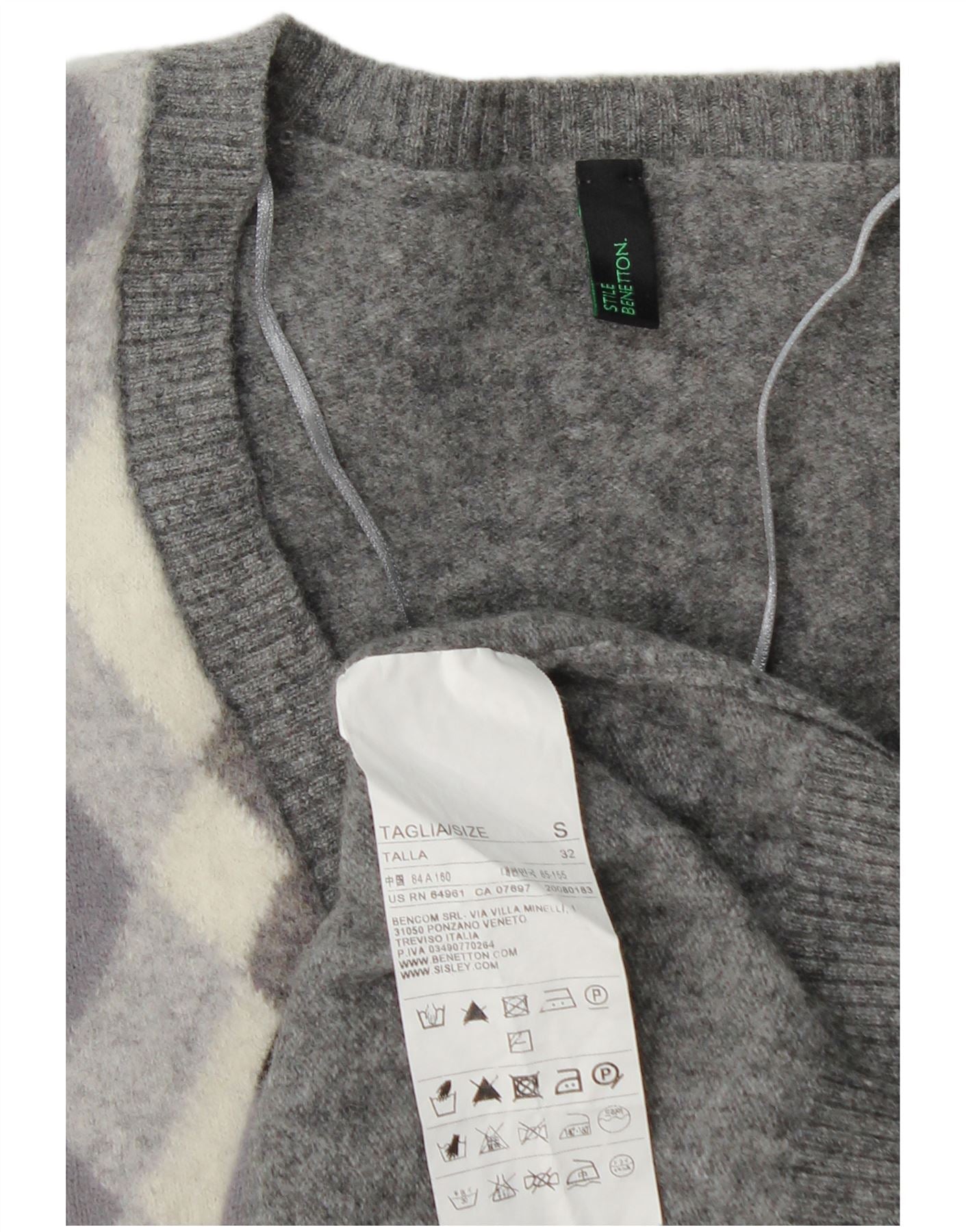Home > Vintage Ρούχα Benetton > Γυναικεία > BENETTON Γυναικείο πουλόβερ με λαιμόκοψη σε V UK 10 Small Grey Argyle/Diamond Wool