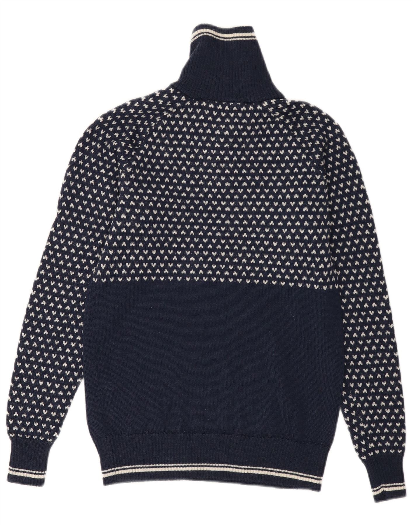 Ανδρικό πουλόβερ με φερμουάρ BERGANS XS Γεωμετρικό μαλλί μπλε Navy