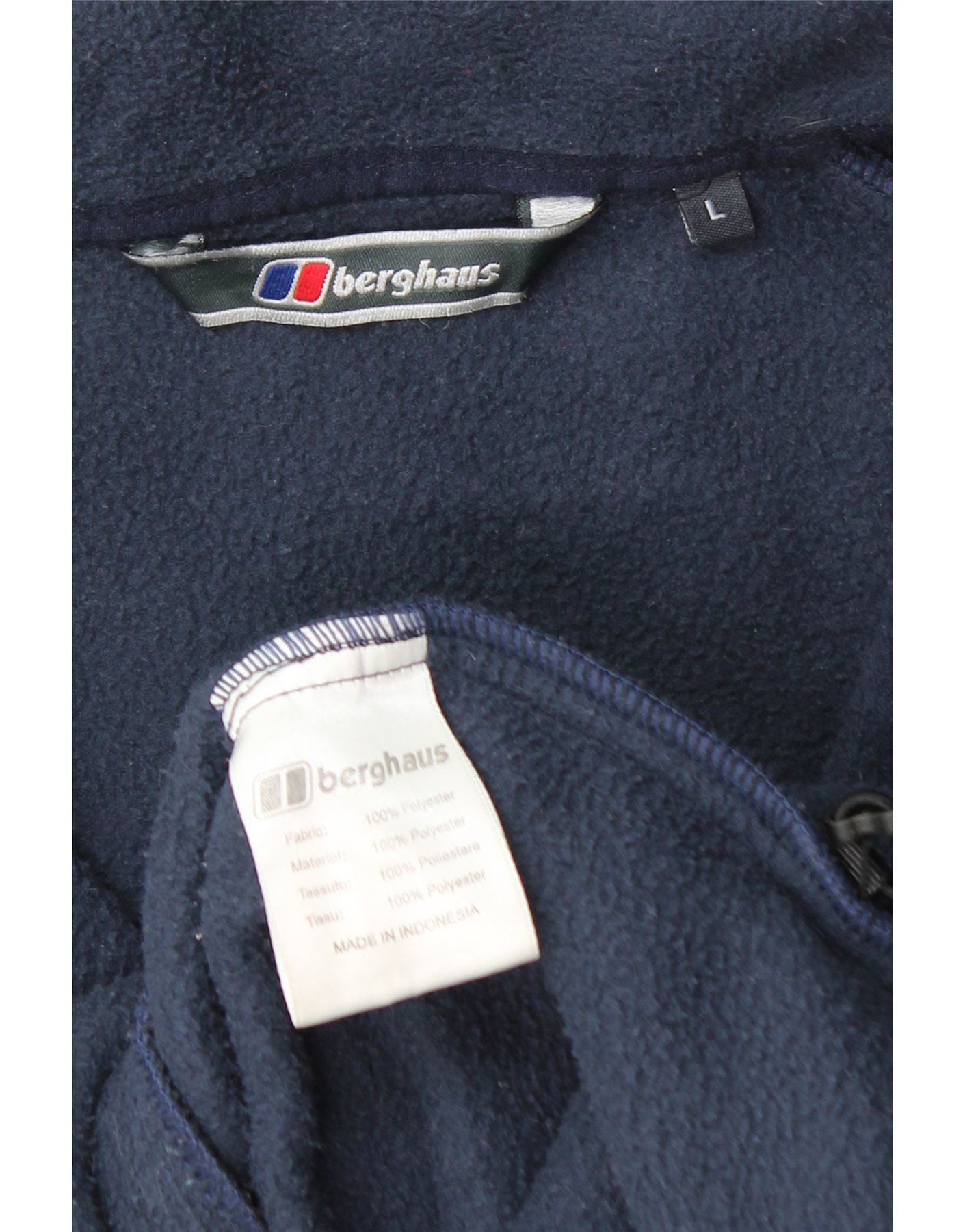 - AI Description: This Berghaus men's Fleece Jacket is crafted from 100 percent polyester fleece in a versatile navy blue. The high neck and full zip closure offer warmth and adjustability. Long sleeves and a regular fit ensure comfortable wear. It features practical zipped pockets for secure storage. This breathable jacket provides comfort, making it ideal for outdoor activities. A subtle logo accent completes the design.