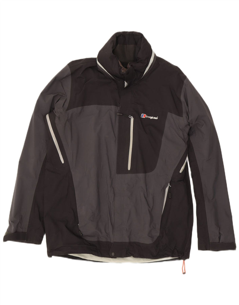BERGHAUS Mens Hooded Rain Jacket UK 40 Large Grey Colourblock Polyamide