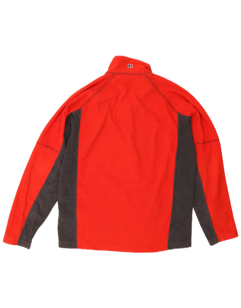 BERGHAUS Mens Zip Neck Fleece Jumper Medium Red Colourblock Polyester