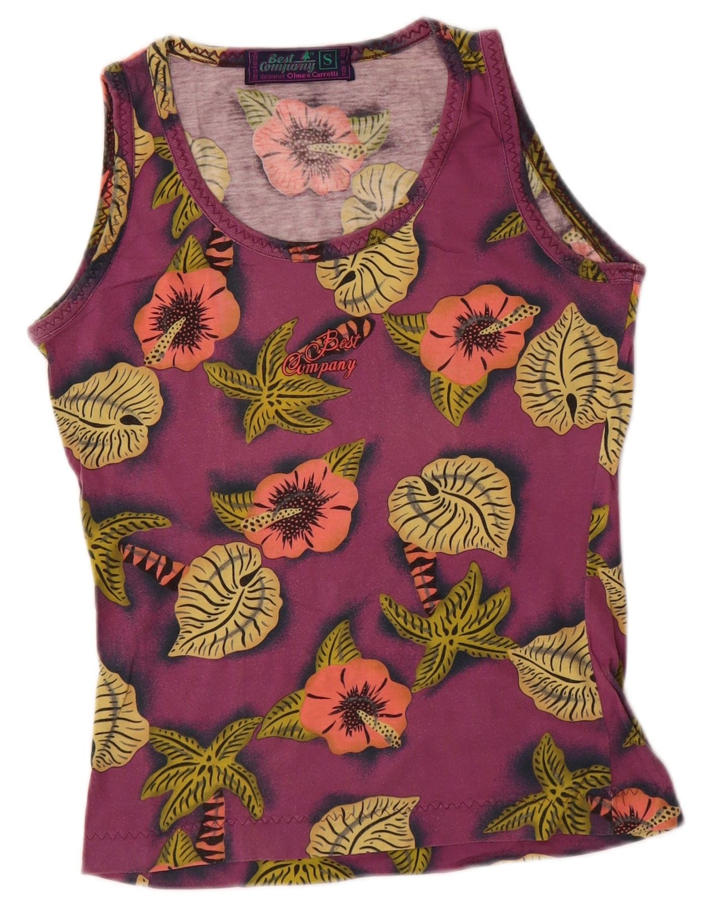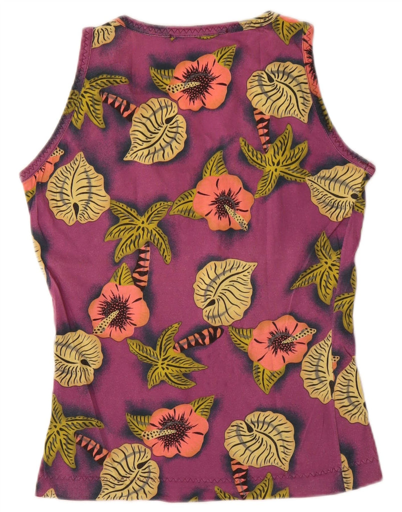 BEST COMPANY Womens Graphic Vest Top UK 10 Small Purple Floral Cotton