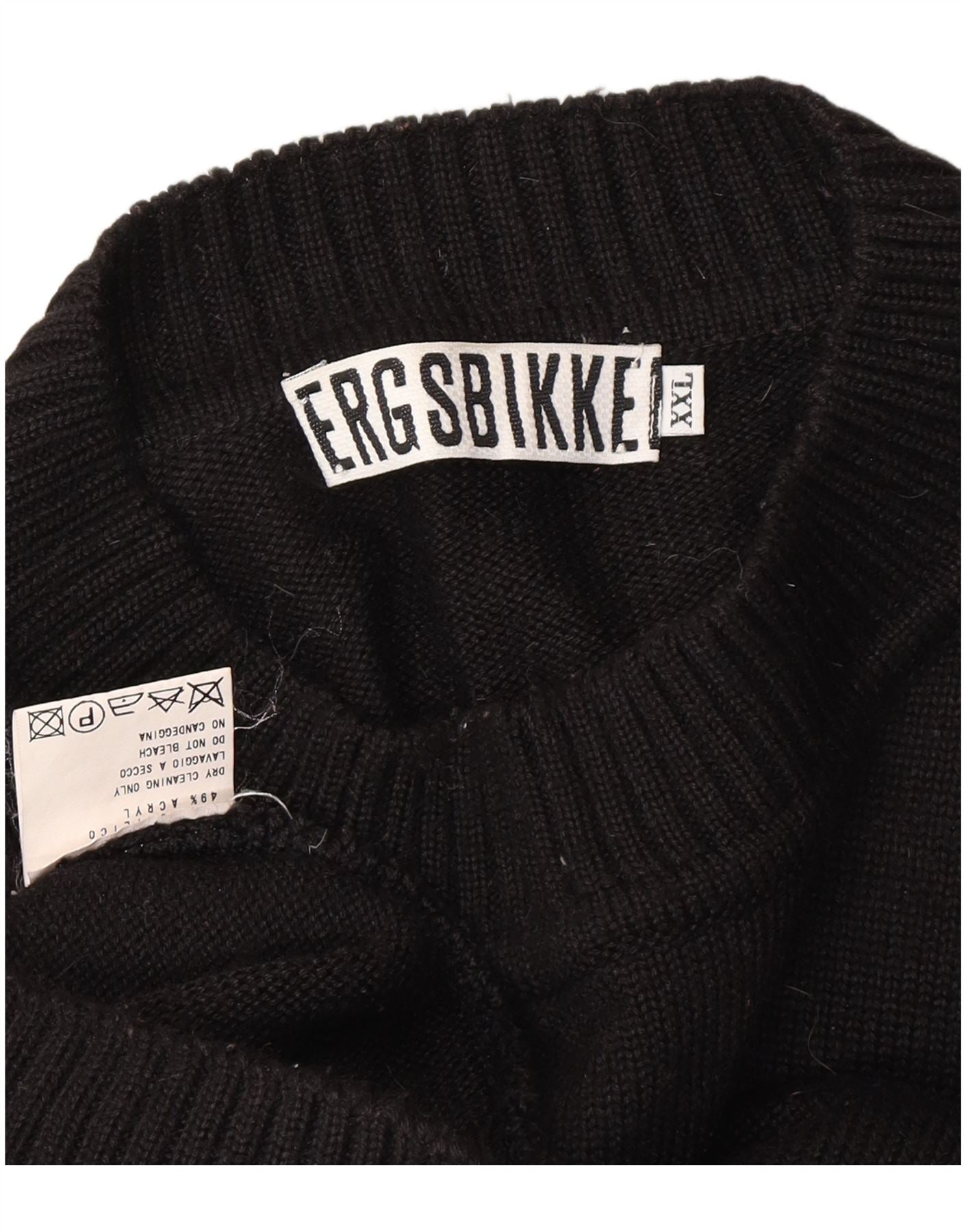 BIKKEMBERGS Mens Crew Neck Jumper Sweater 2XL Black Colourblock Wool