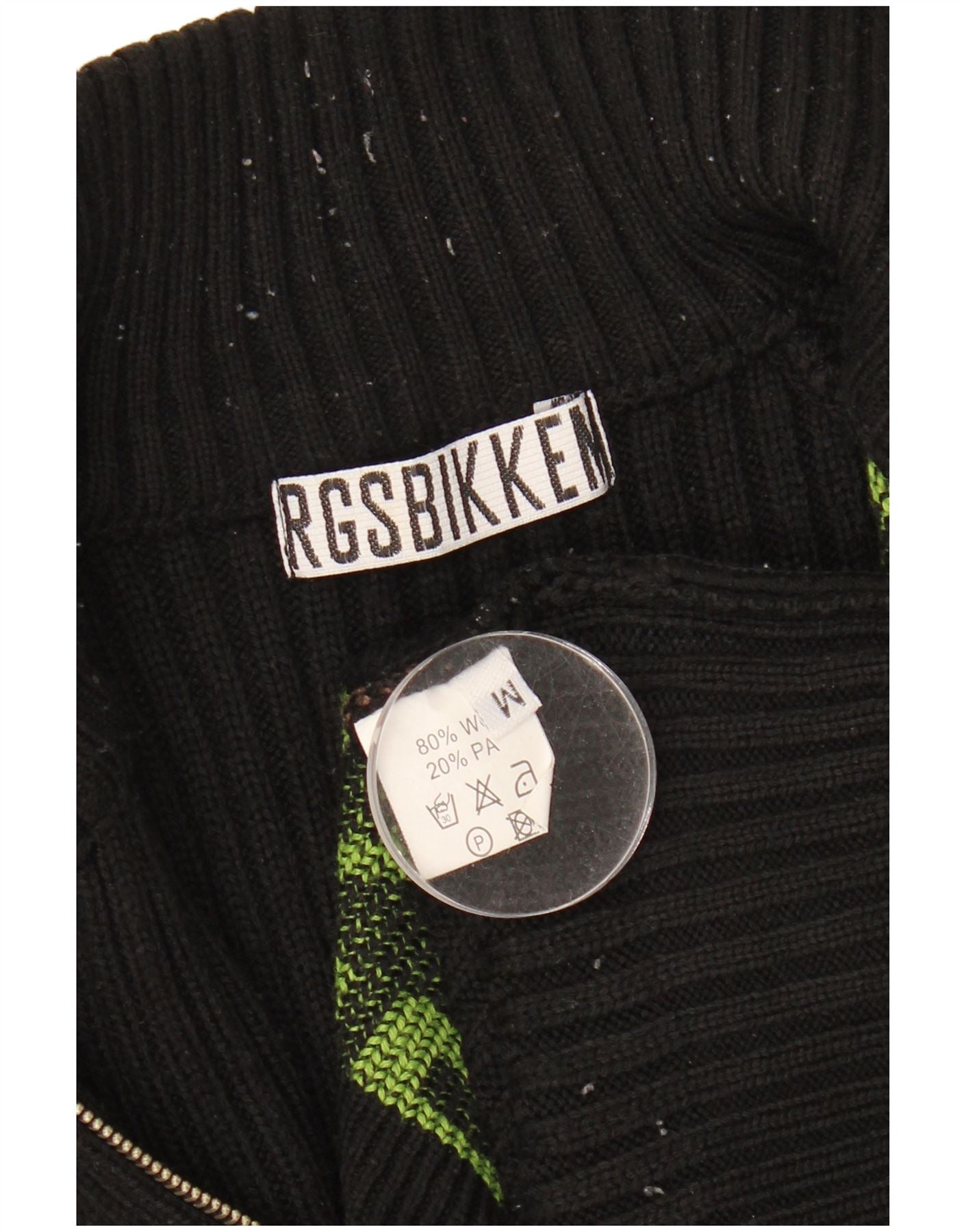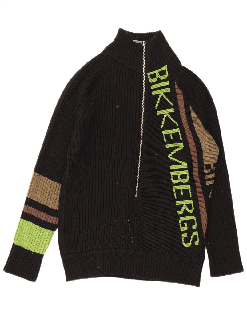 BIKKEMBERGS Mens Graphic Zip Neck Jumper Sweater Medium Black Colourblock