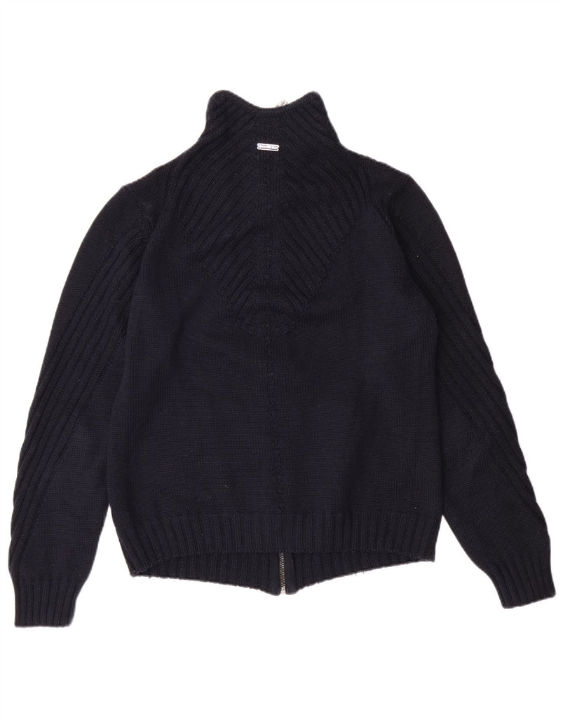 BIKKEMBERGS Womens Oversized Cardigan Sweater UK 6 XS Navy Blue Wool