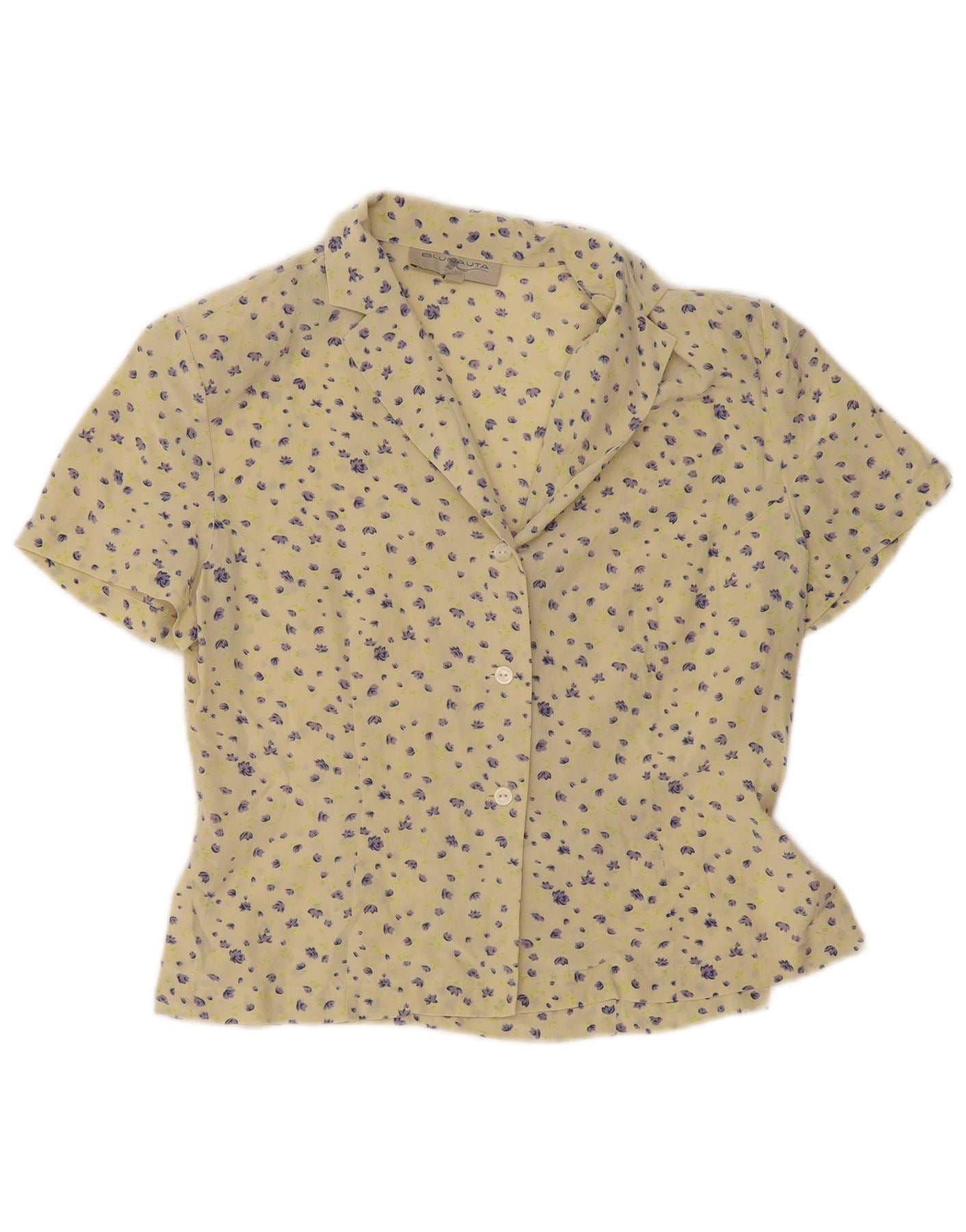 Blunauta γυναικείο κοντομάνικο πουκάμισο Μπλούζα IT 42 Μεσαίο κίτρινο λουλουδάτο μετάξι