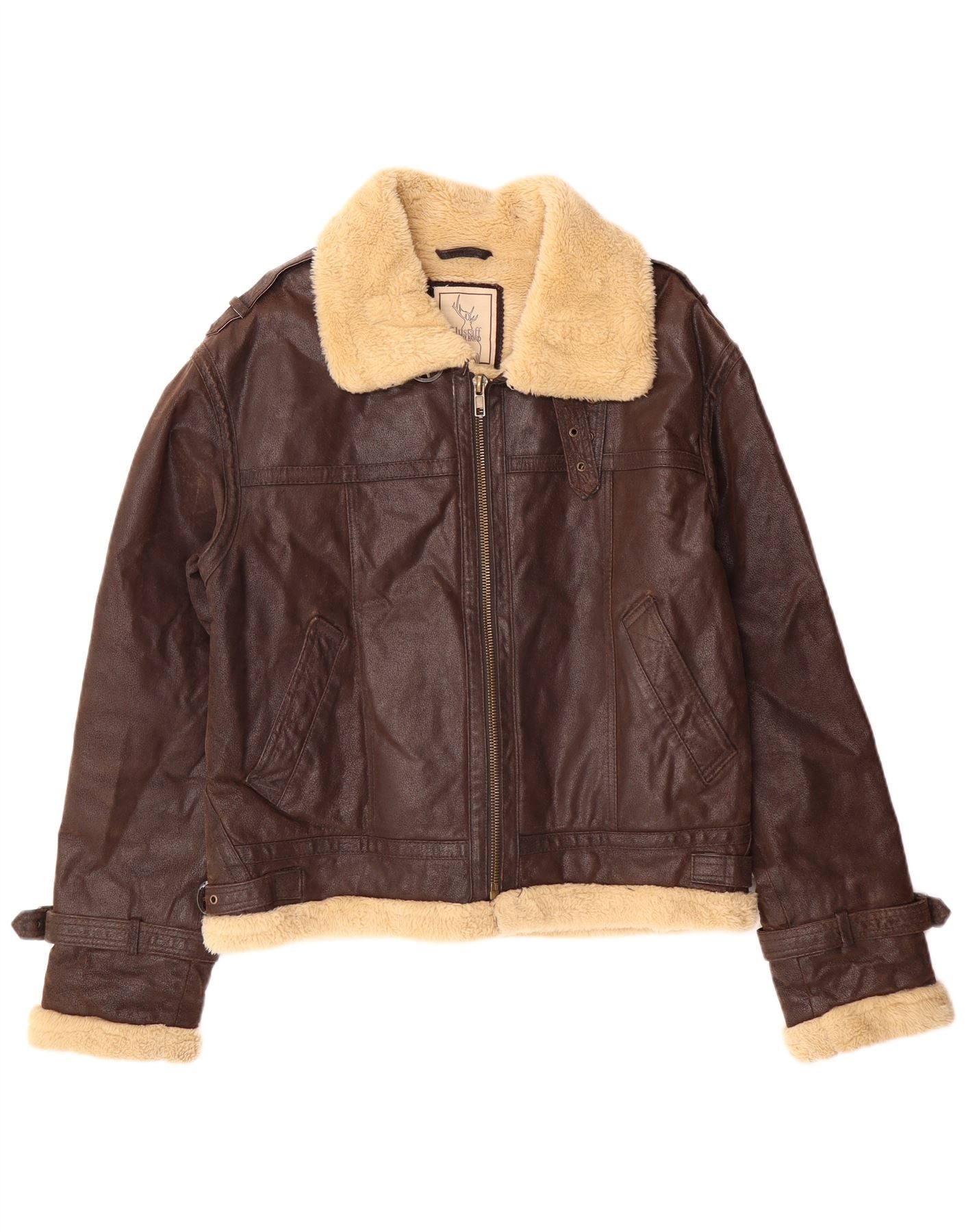 BLUSTAFF Γυναικείο Shearling Jacket UK 16 Large Brown Δερμάτινο